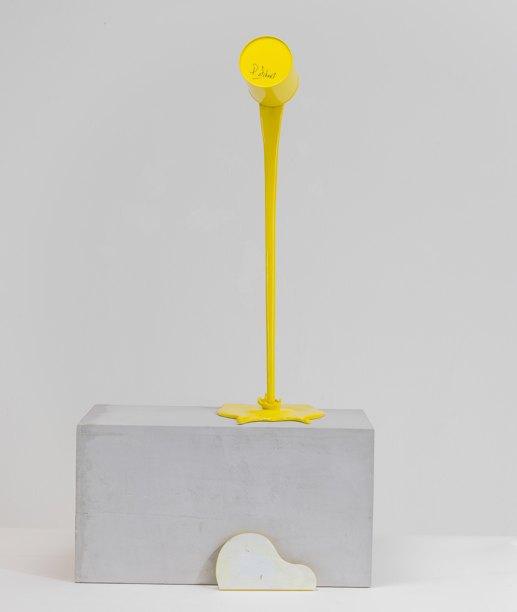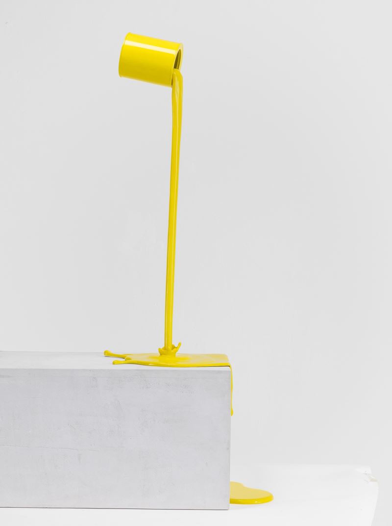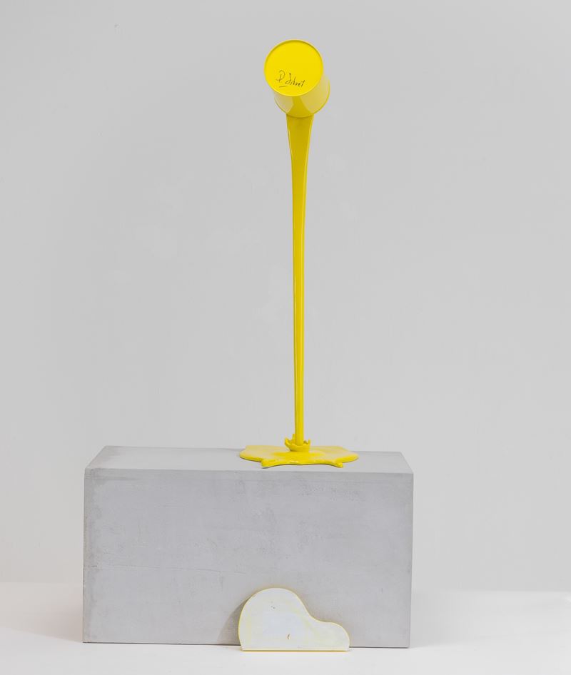 scultura in alluminio dipinto e zoccolo in legno dipinto