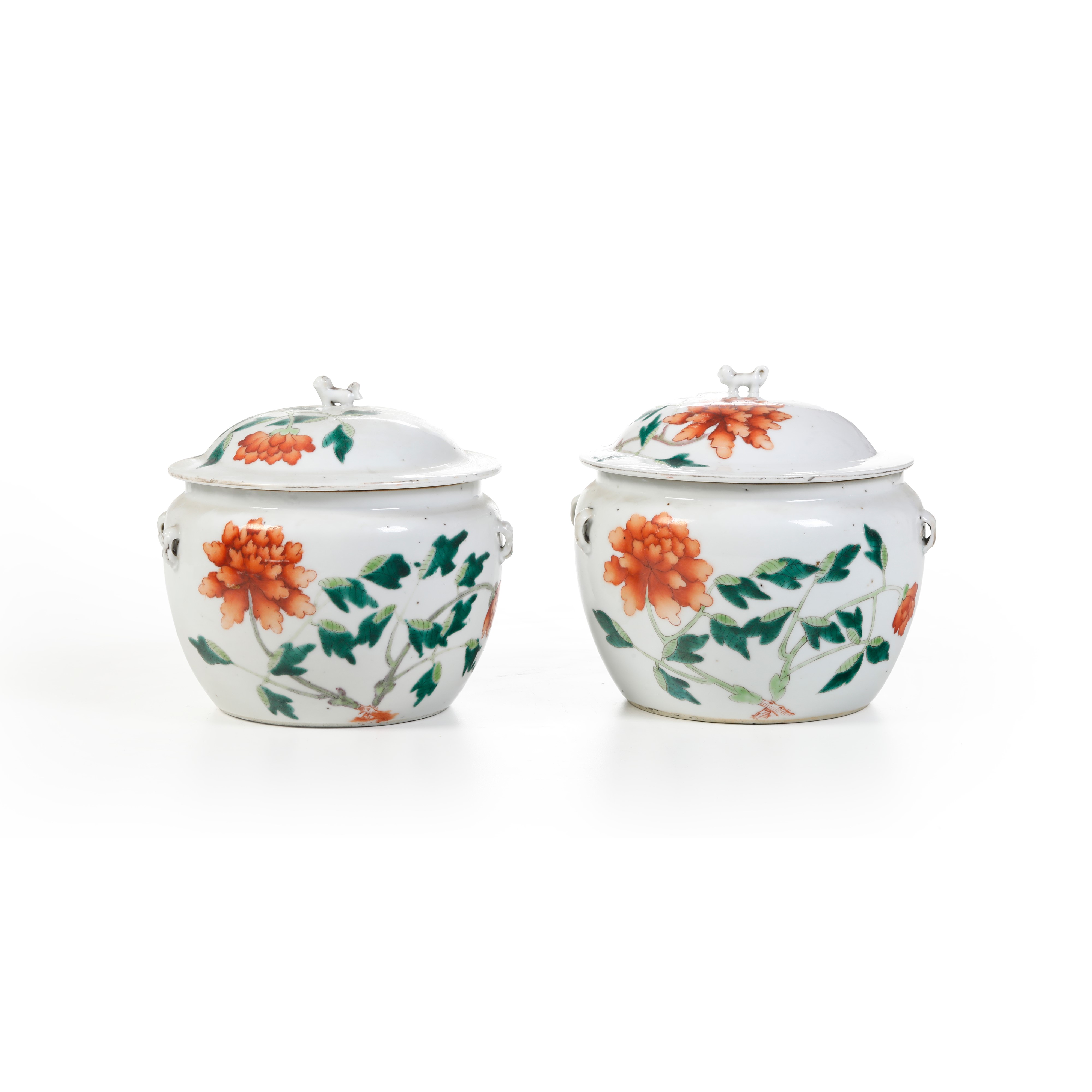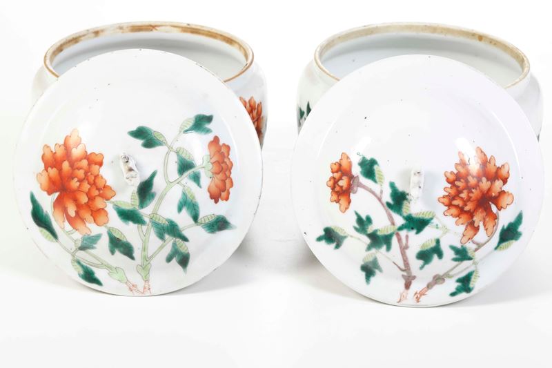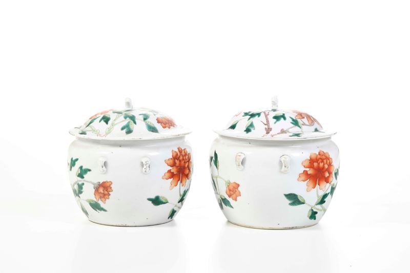 Coppia di potiches in porcellana a motivi floreali, Cina, Dinastia Qing, XIX secolo