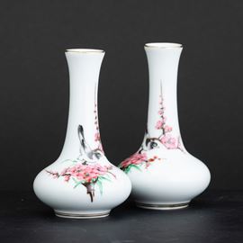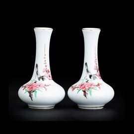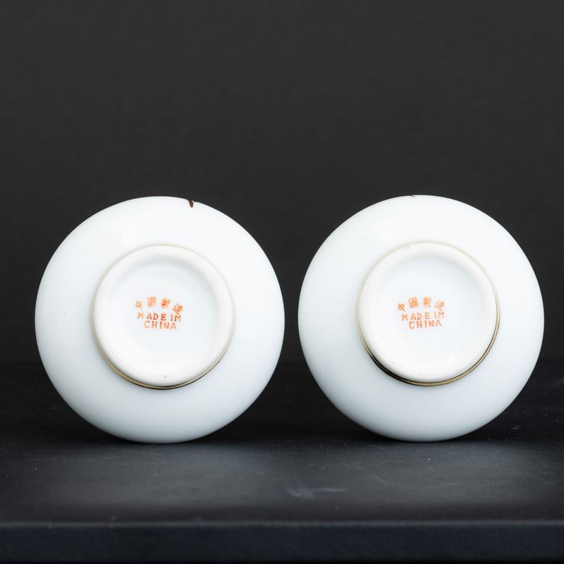 Coppia di vasetti in porcellana a soggetto naturalistico, Cina, Repubblica