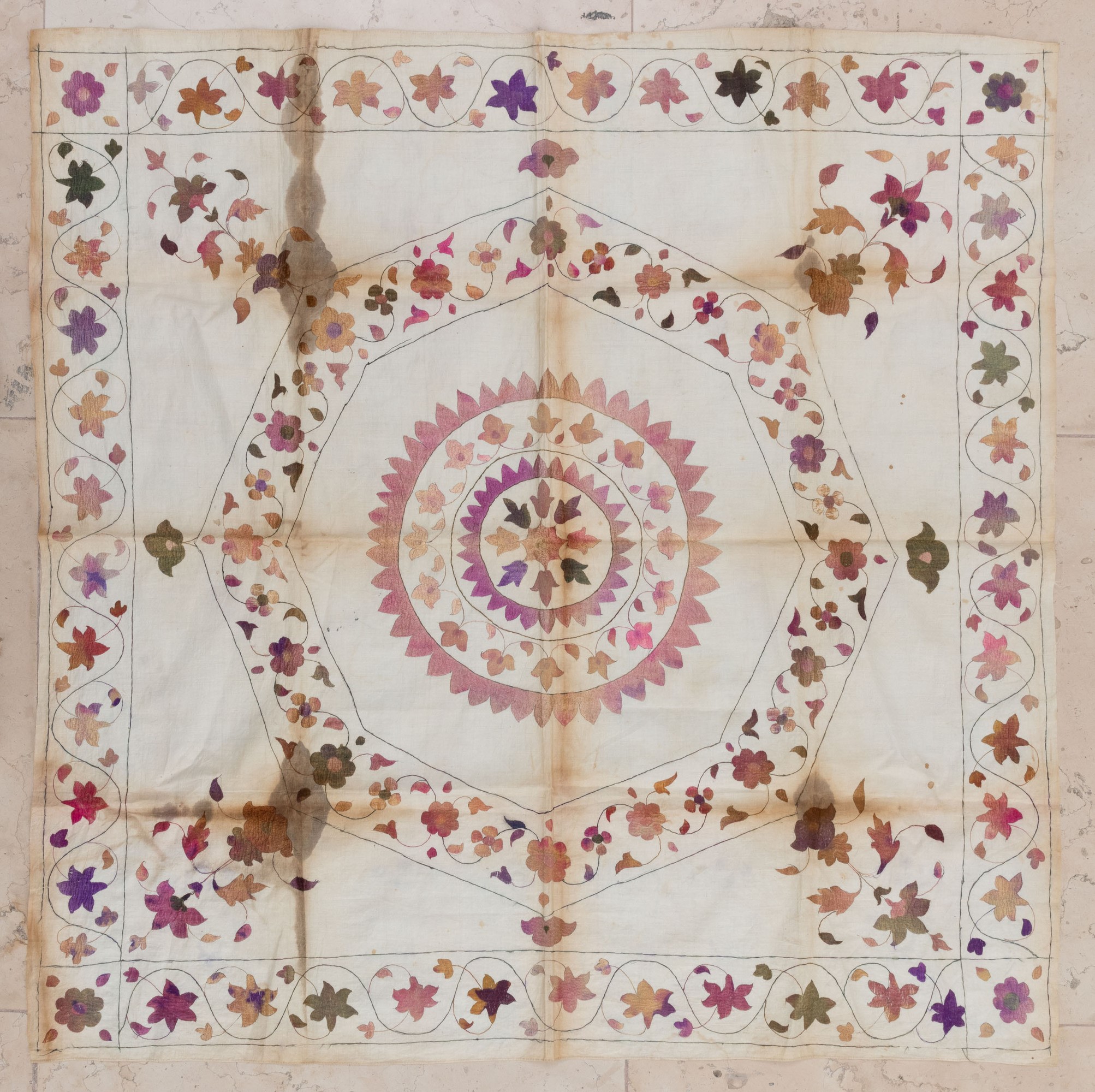 Tessuto antico di seta ricamato Chamba-Rumal, Inidia, XIX secolo