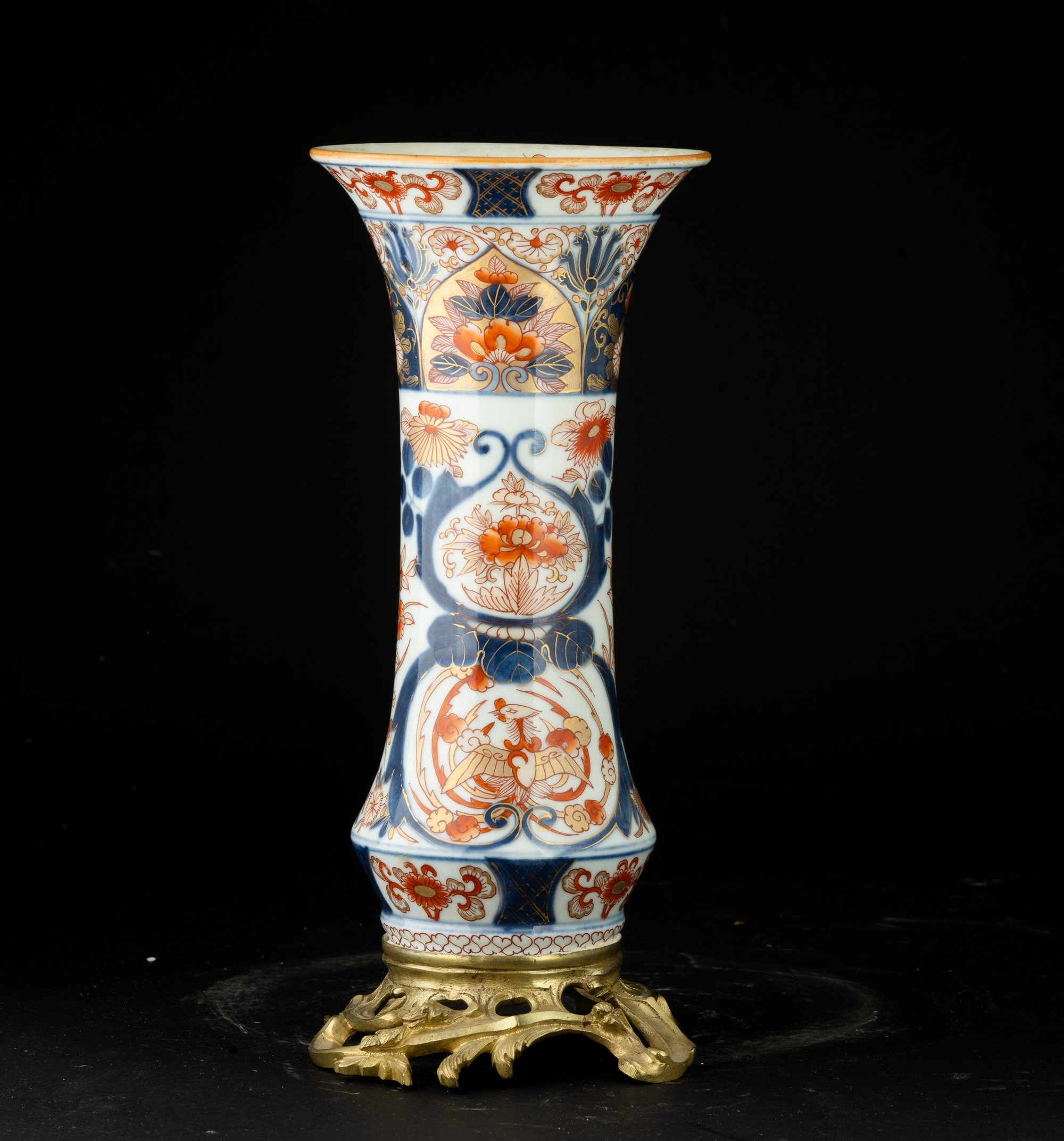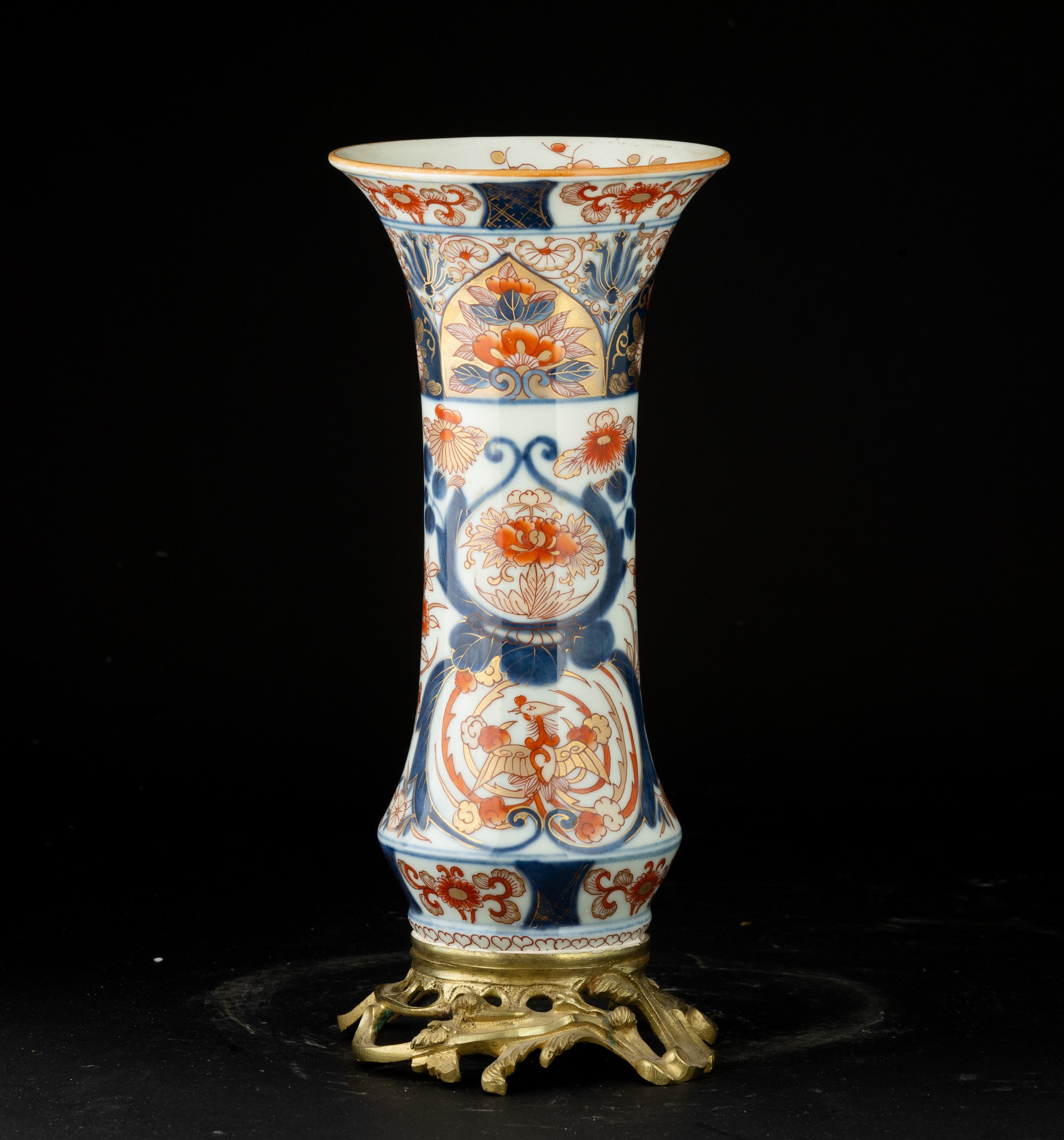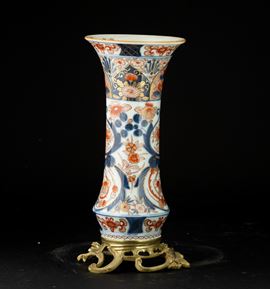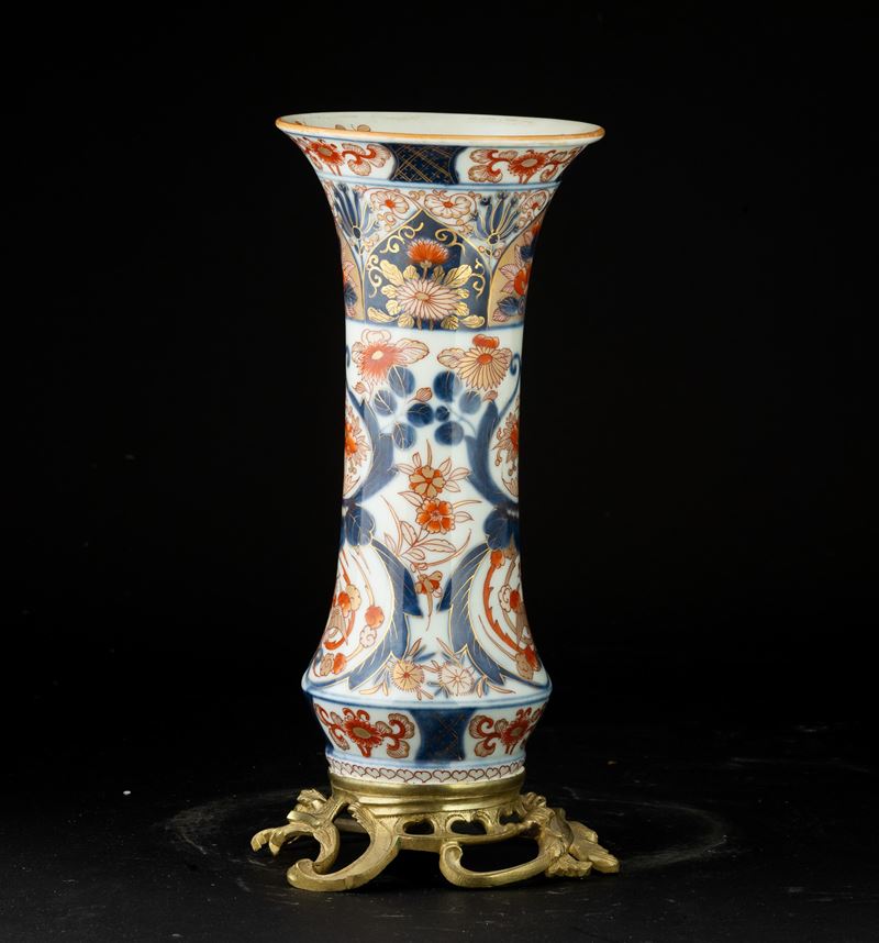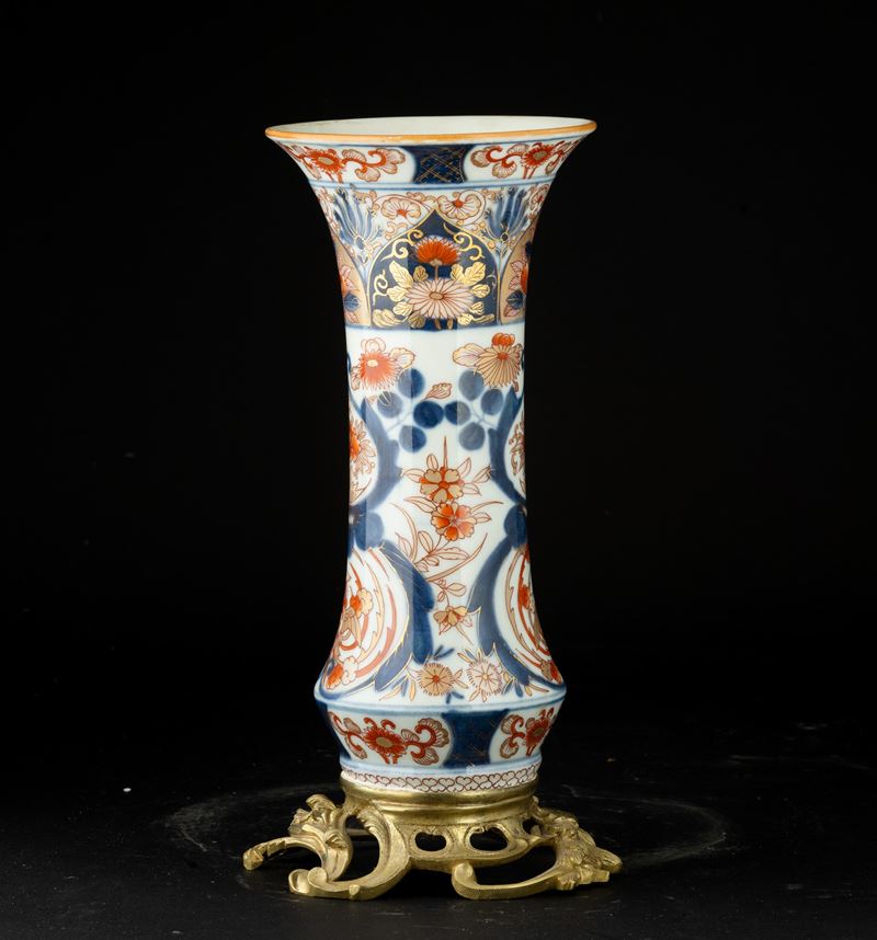 Vaso a tromba in porcellana Imari con montatura in bronzo, Giappone, periodo Edo, XIX secolo