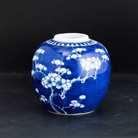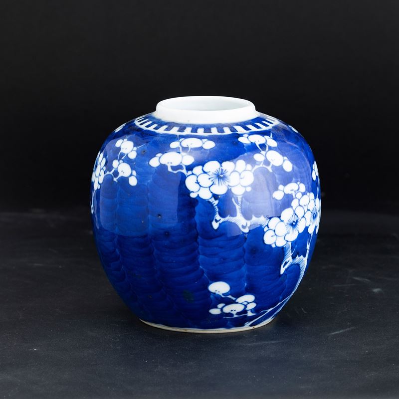 Vaso in porcellana a fondo blu con motivi floreali, Cina, Dinastia Qing, XIX secolo