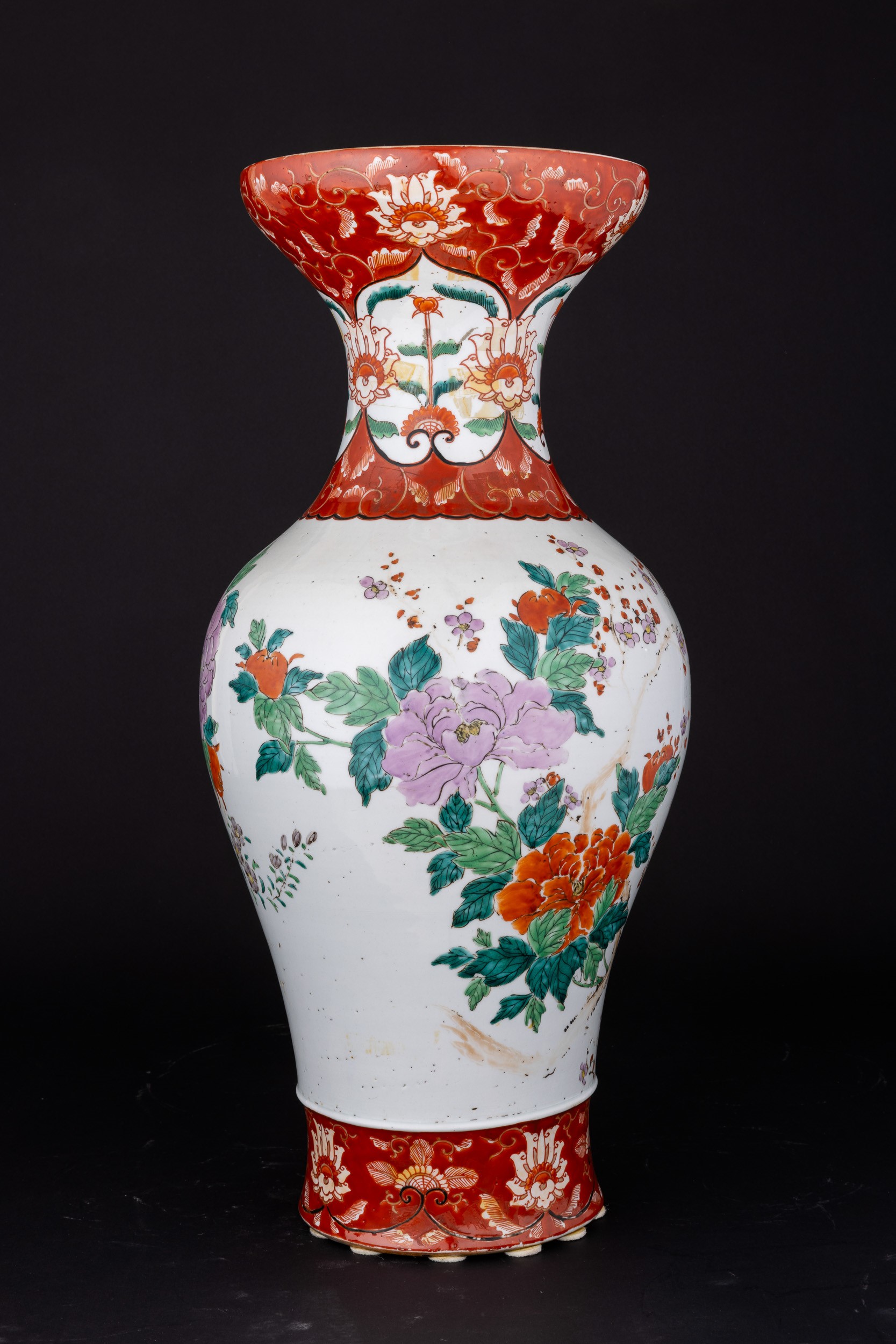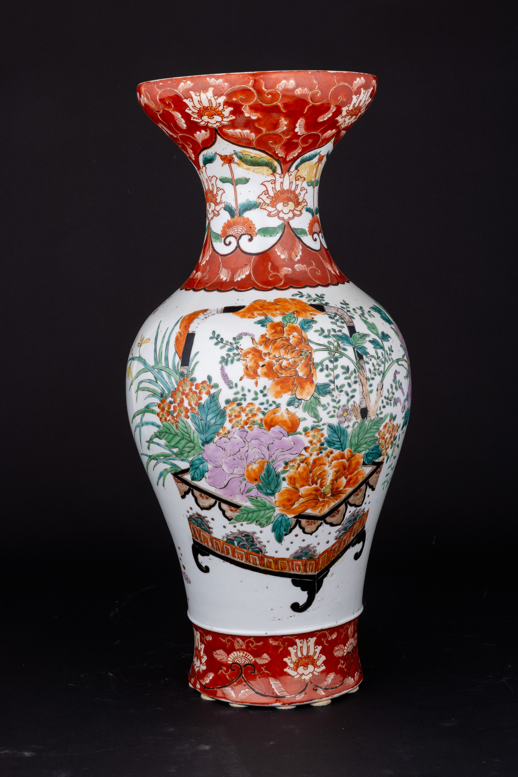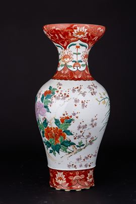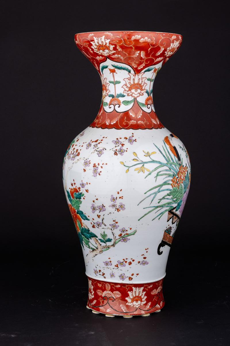 Vaso in porcellana con raffigurante scena vegetale e motivi floreali, Cina, XX secolo