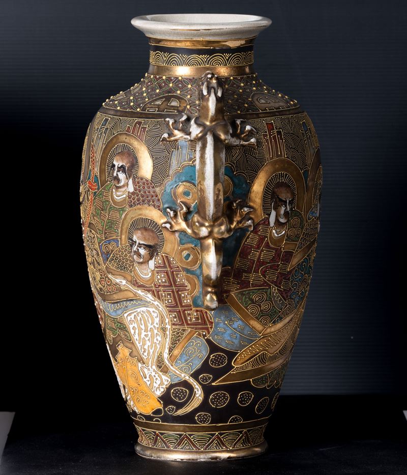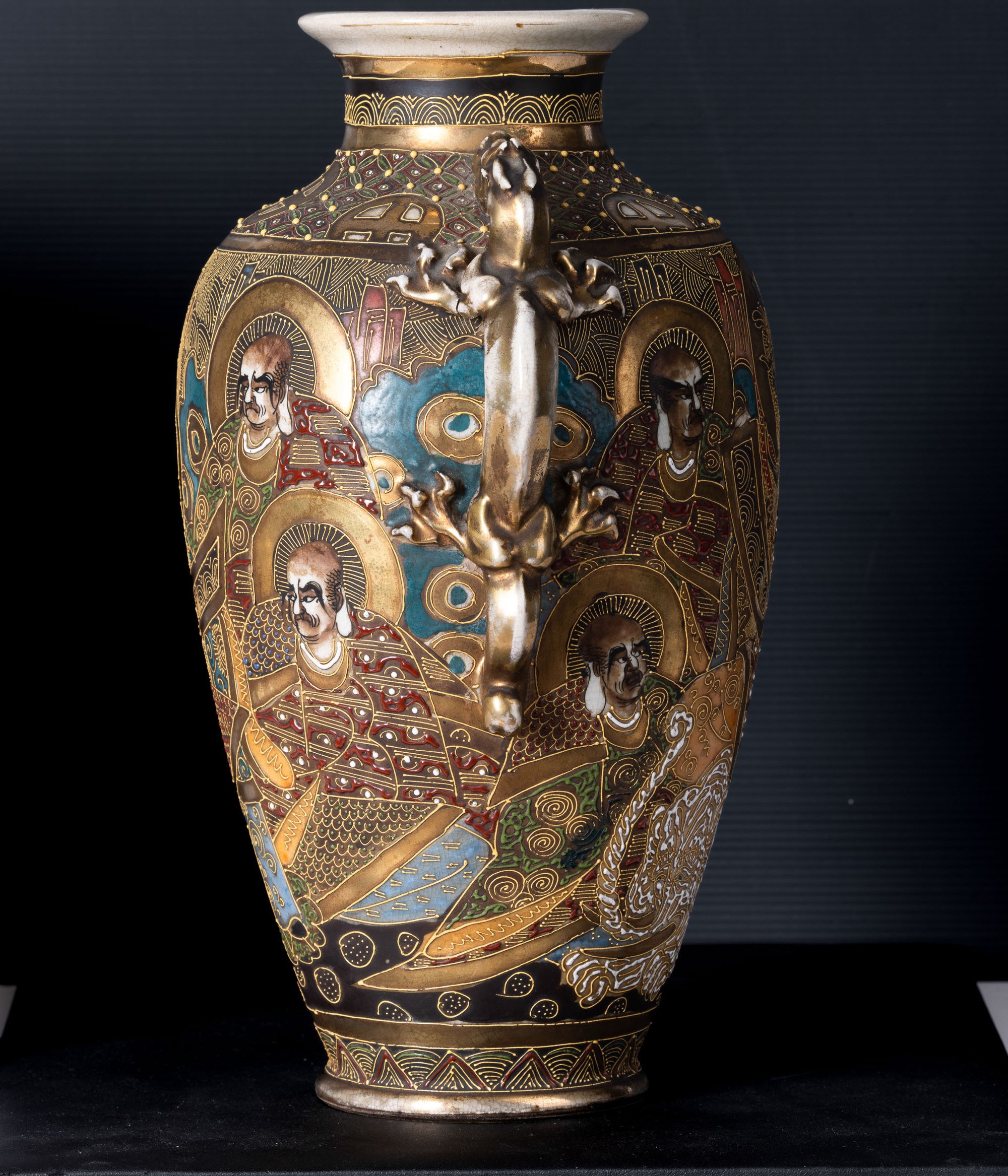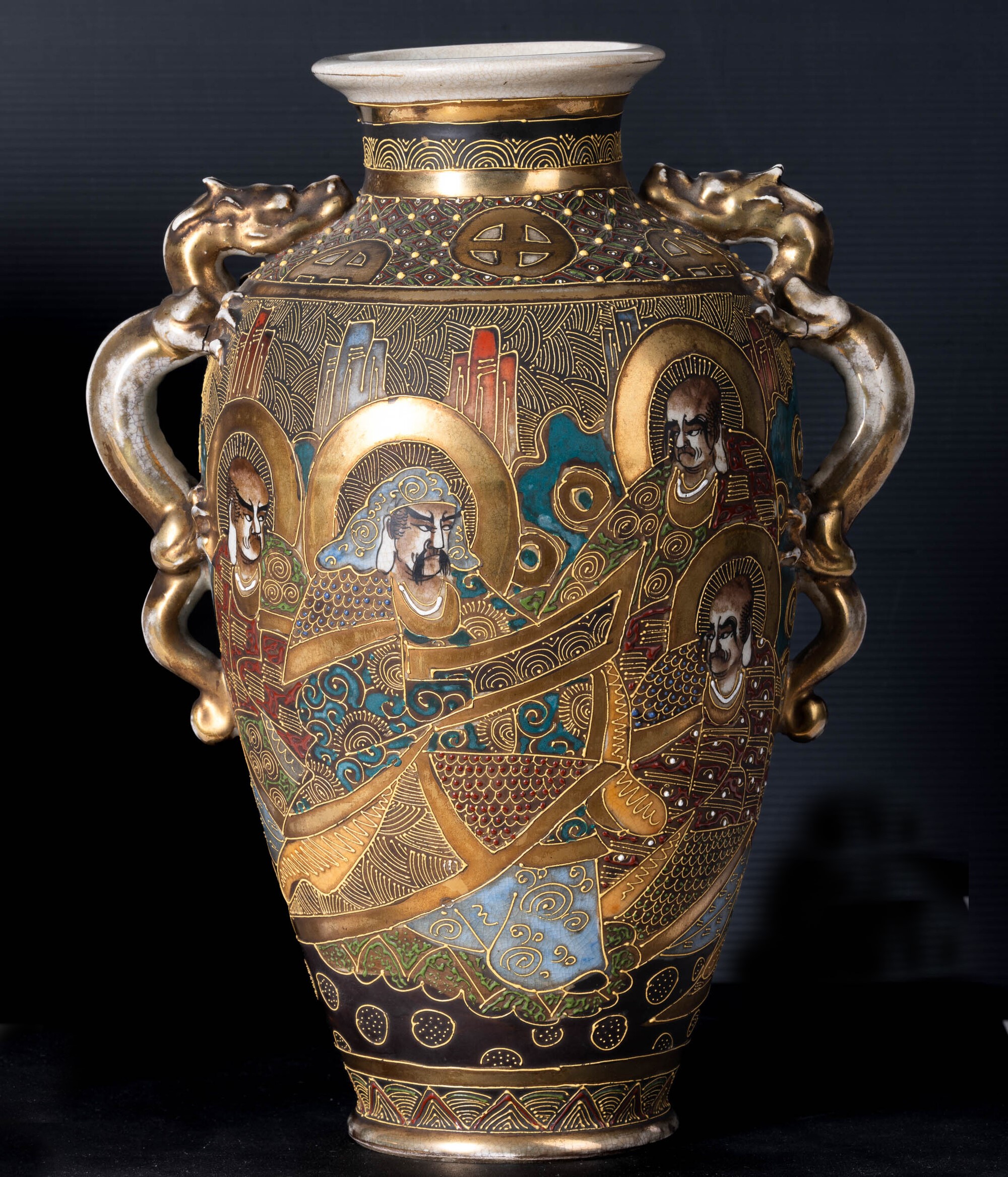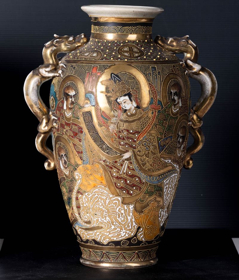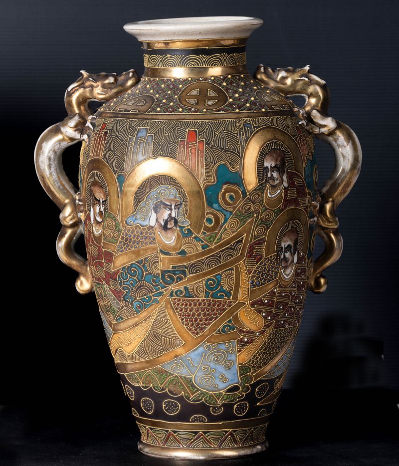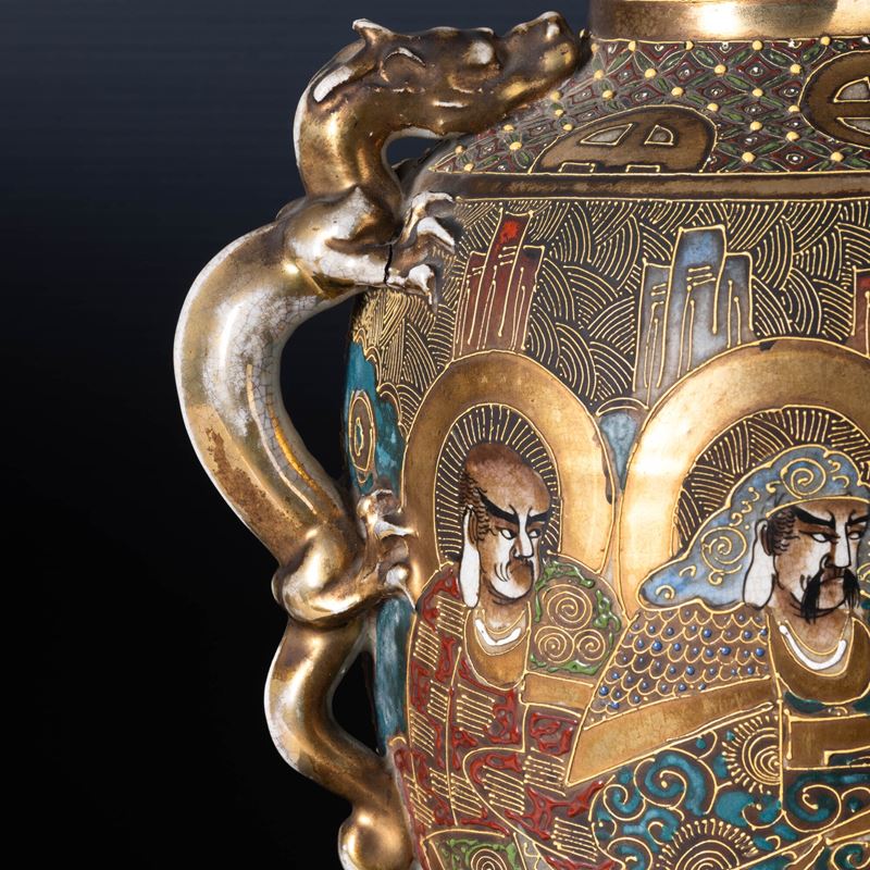 Vaso in porcellana Satsuma con anse a guisa di draghi, Giappone, XIX secolo