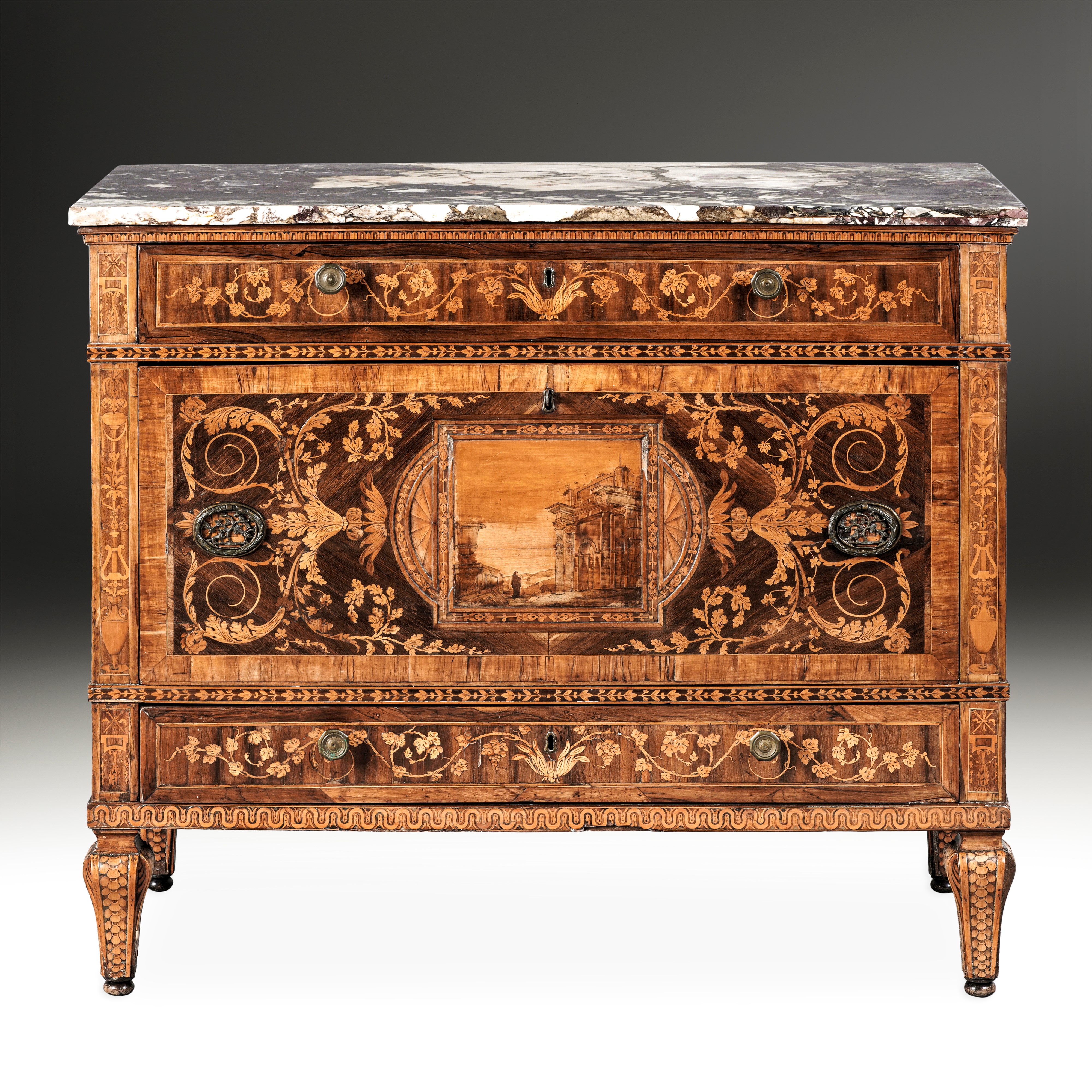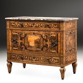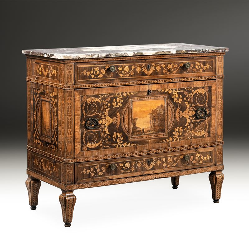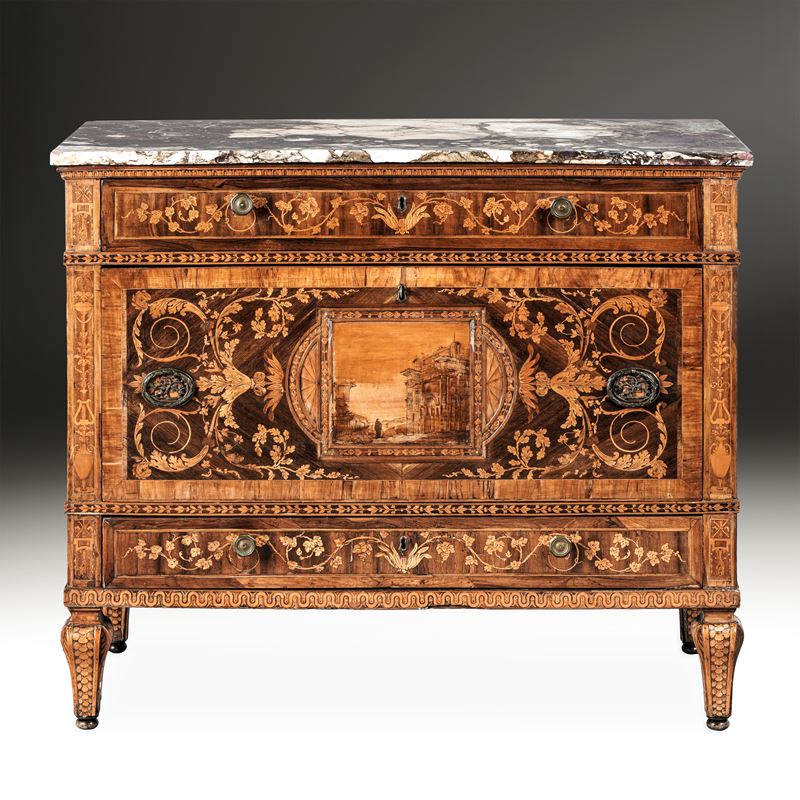 Cassettone intarsiato. Attribuito a Gaetano Renoldi, Genova, ultimo decennio del XVIII secolo