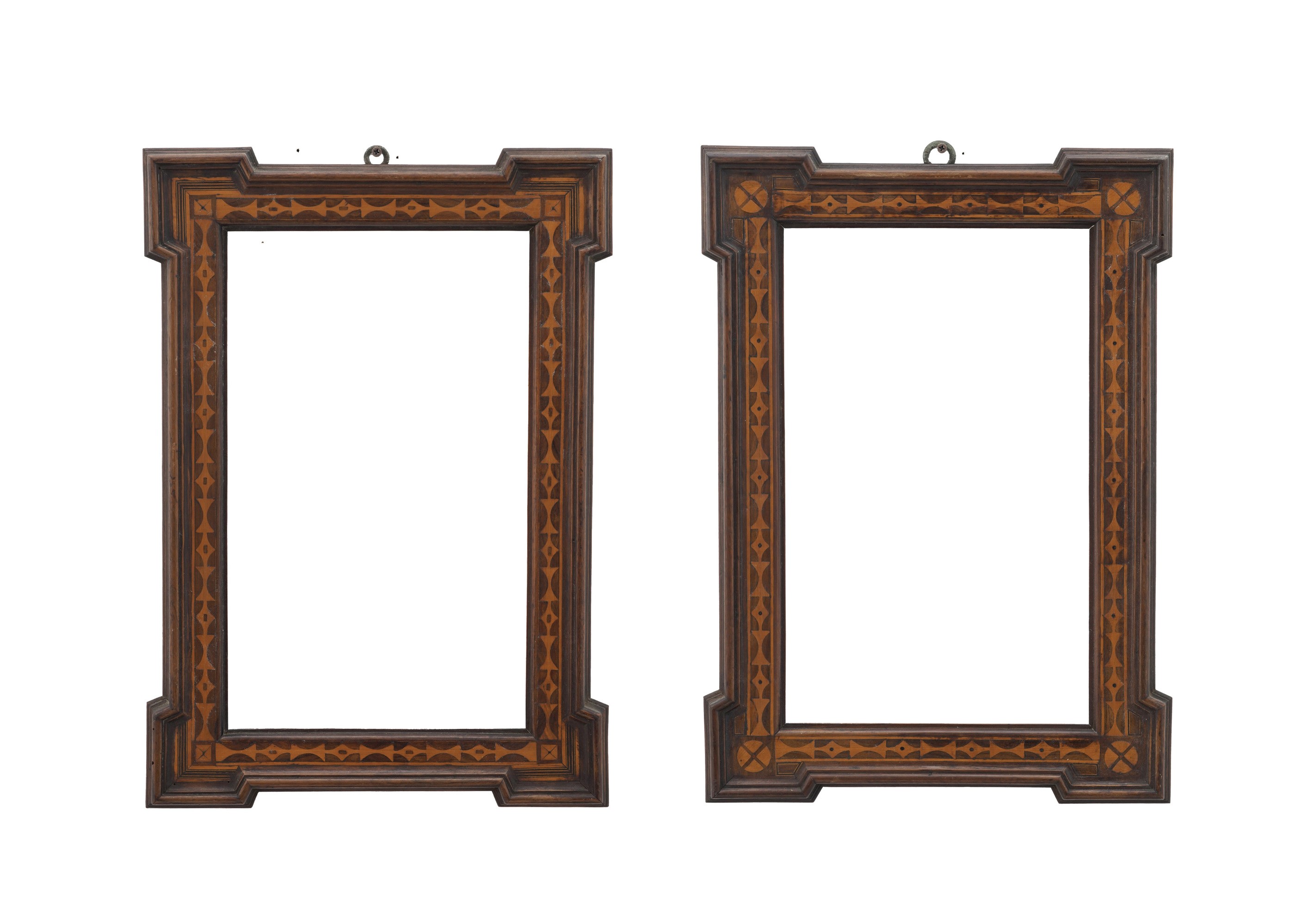 Coppia di cornici sagomate intarsiate, fine XIX secolo
