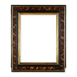 Cornice a cassetta in legno dipinto, ebanizzato e dorato. Italia centrale XVII secolo
