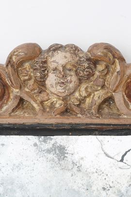 Cornice sansovinesca in legno intagliato e dipinto. Veneto XVI-XVII secolo