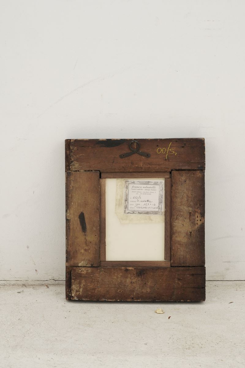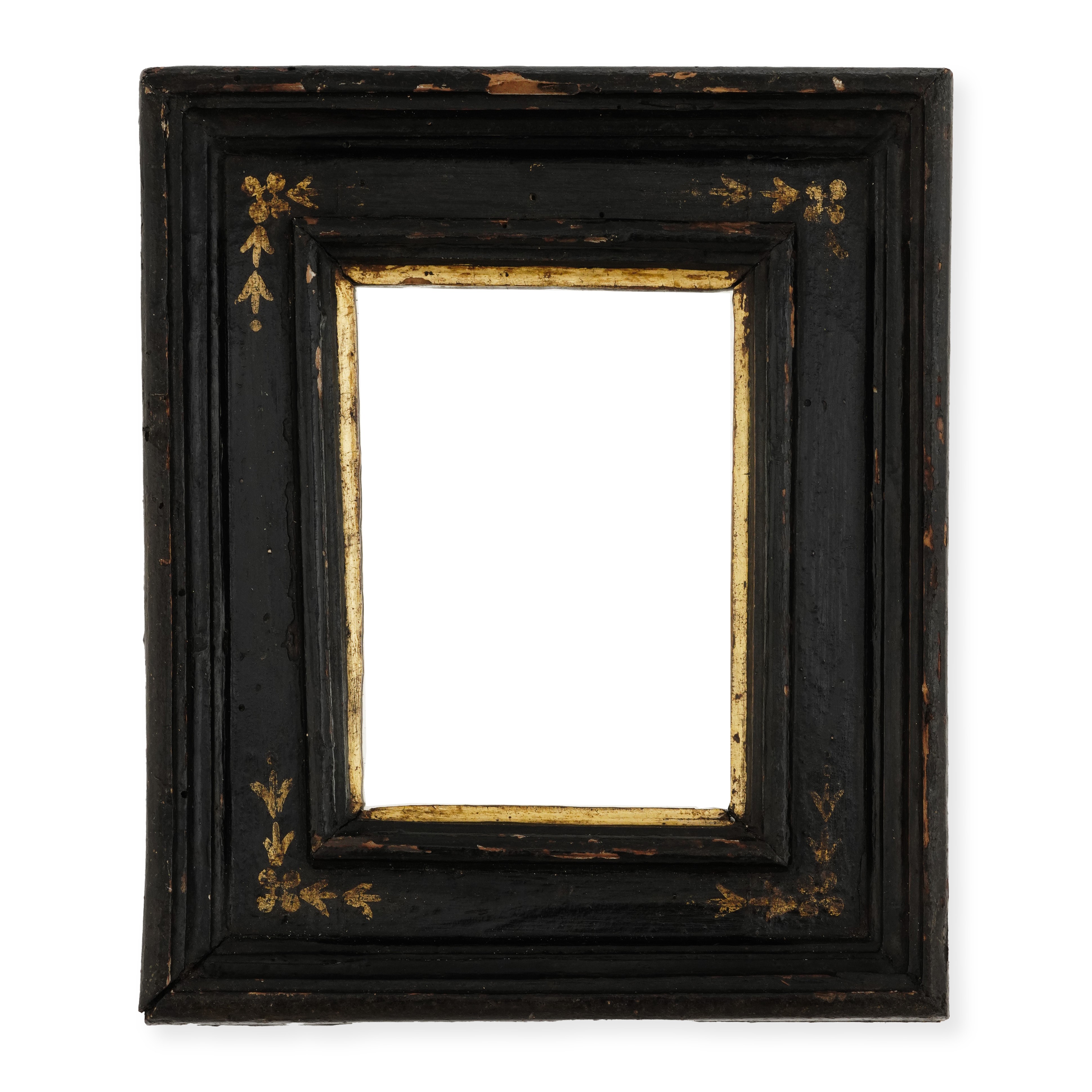 Piccola cornice a cassetta in legno ebanizzato con decori dorati. Toscana XVII secolo
