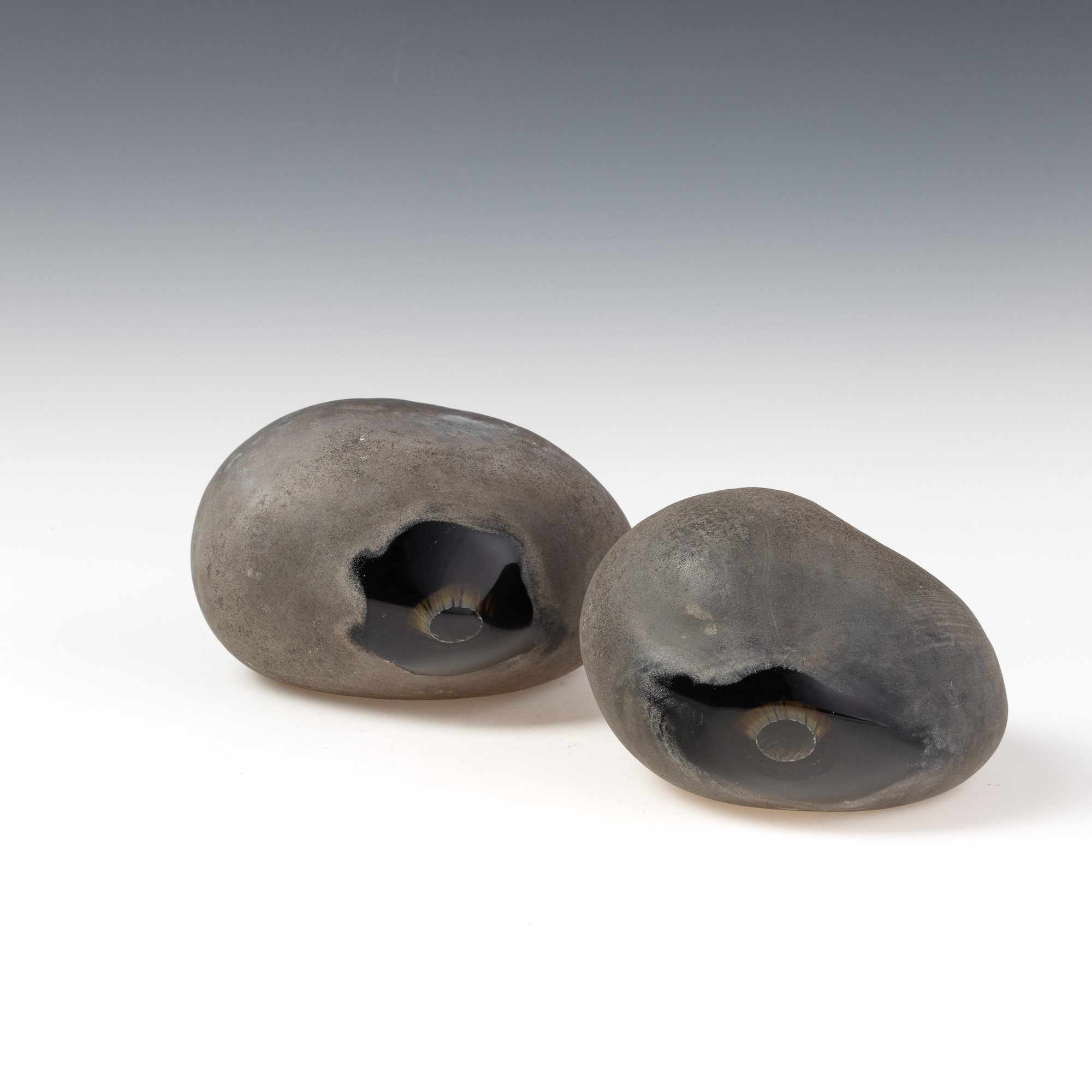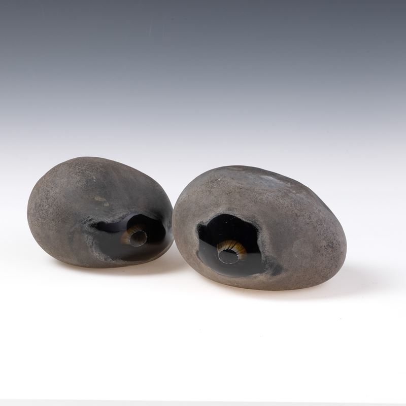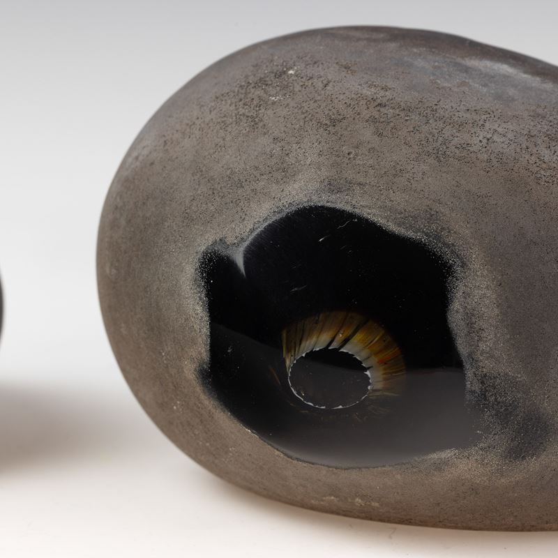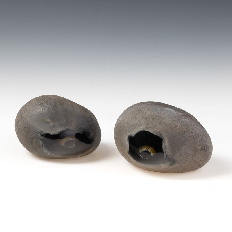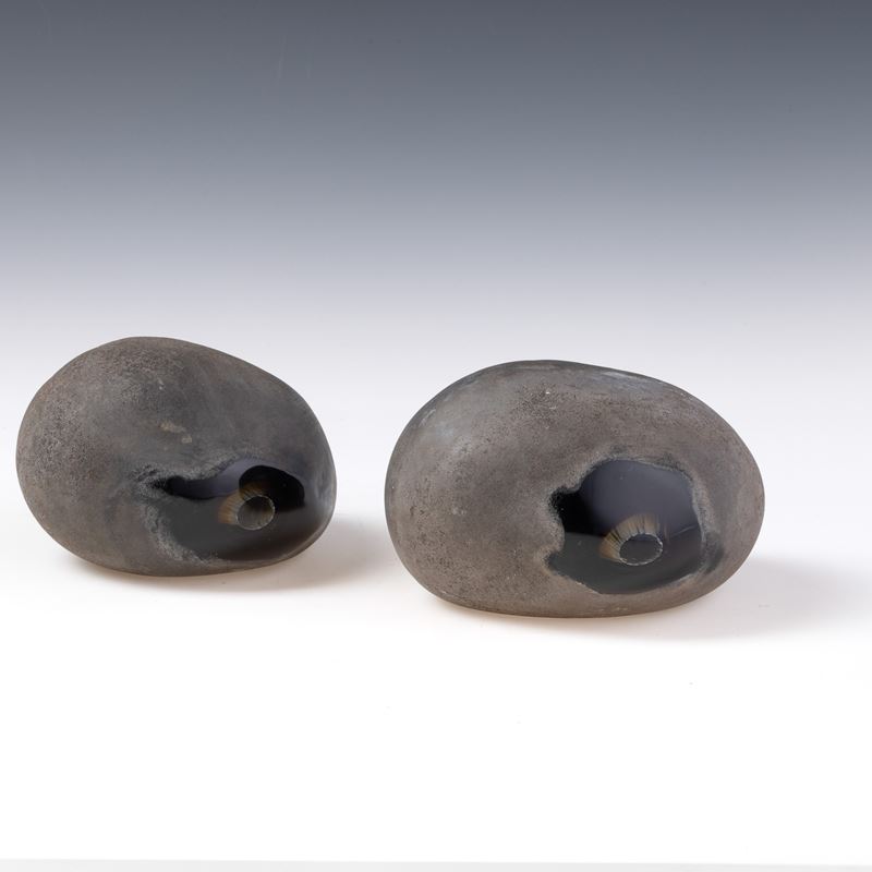 Coppia di sculture serie Sasso in vetro sommerso pesante con superficie lavorata a tecnica a scavo.