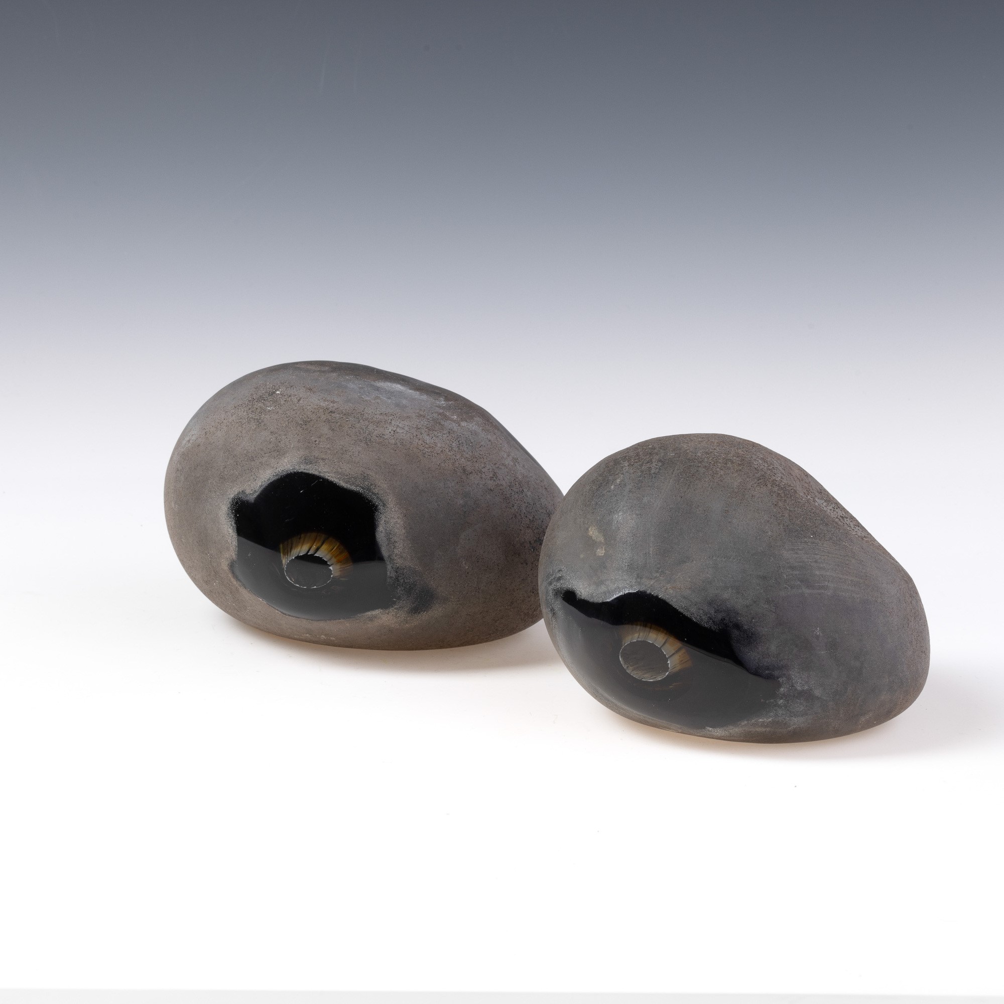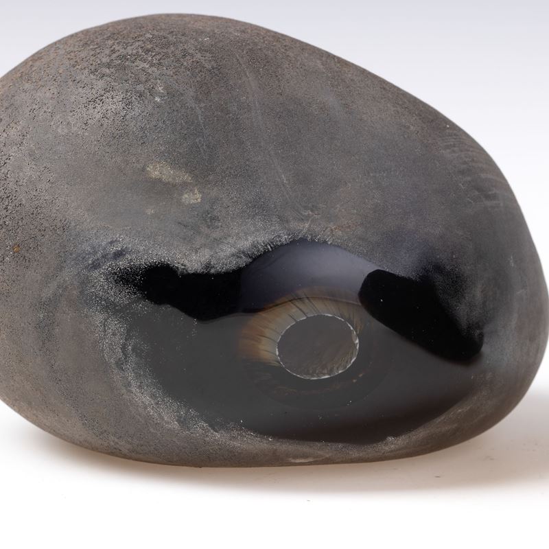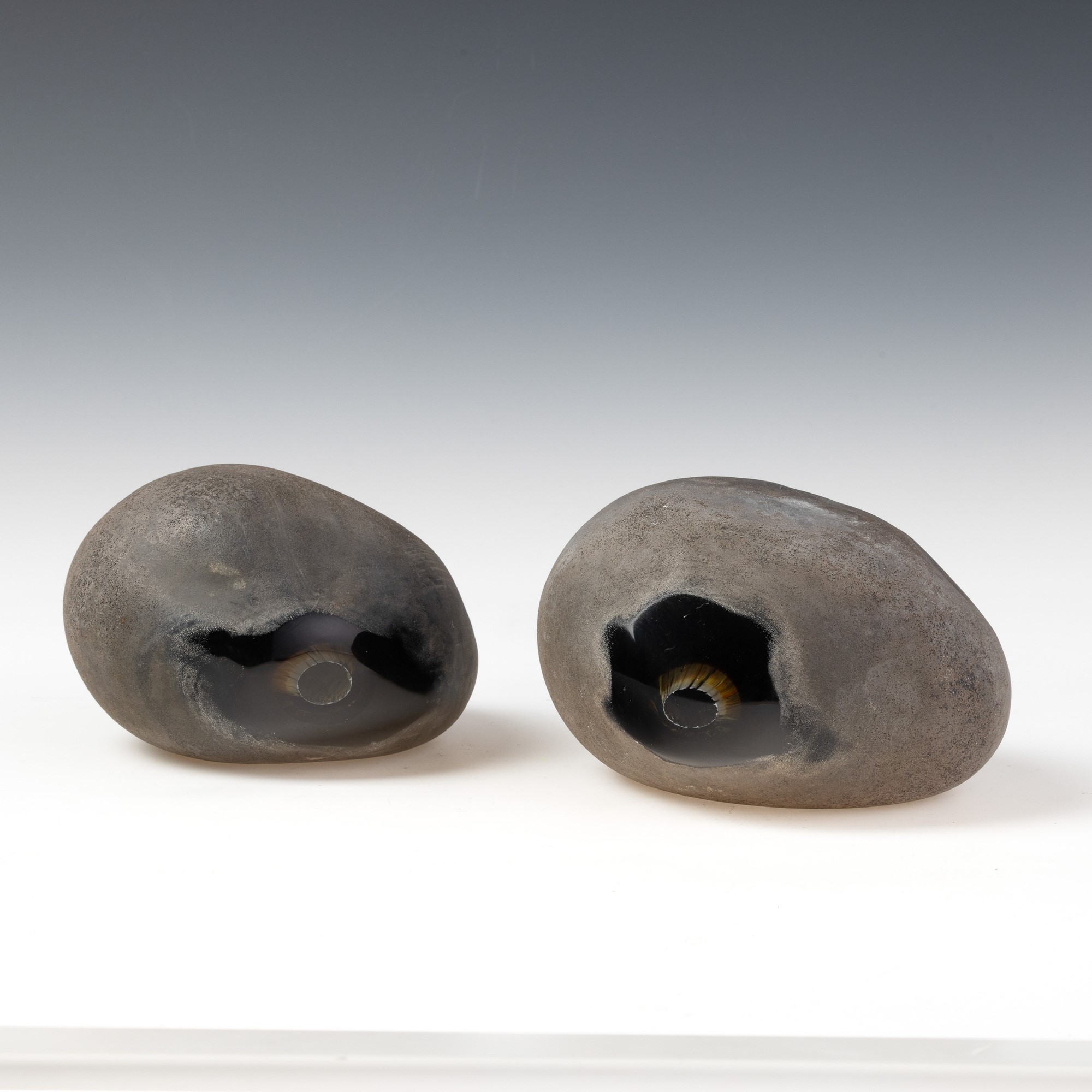 Coppia di sculture serie Sasso in vetro sommerso pesante con superficie lavorata a tecnica a scavo.