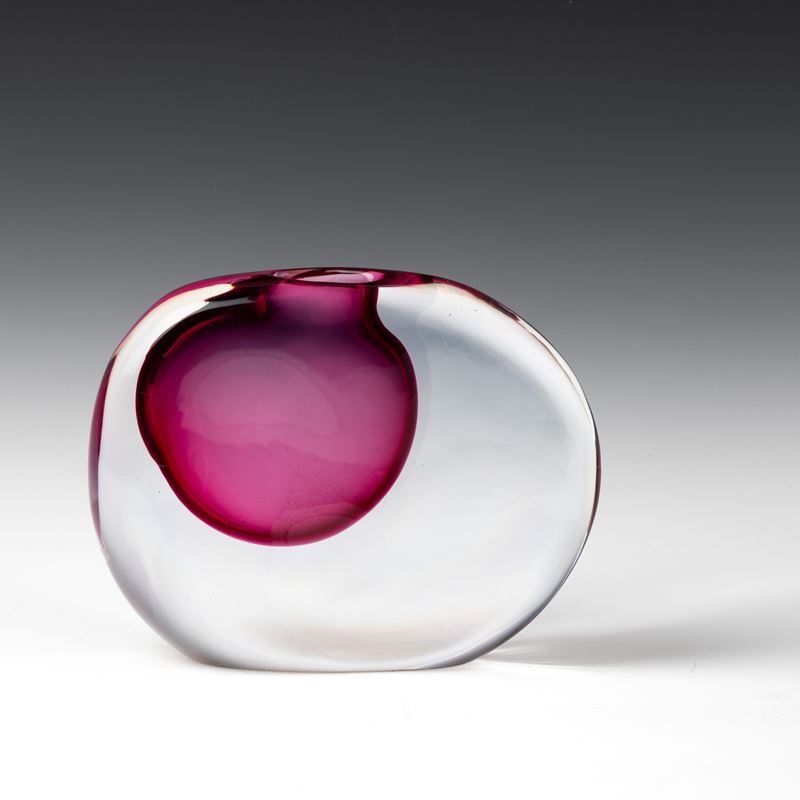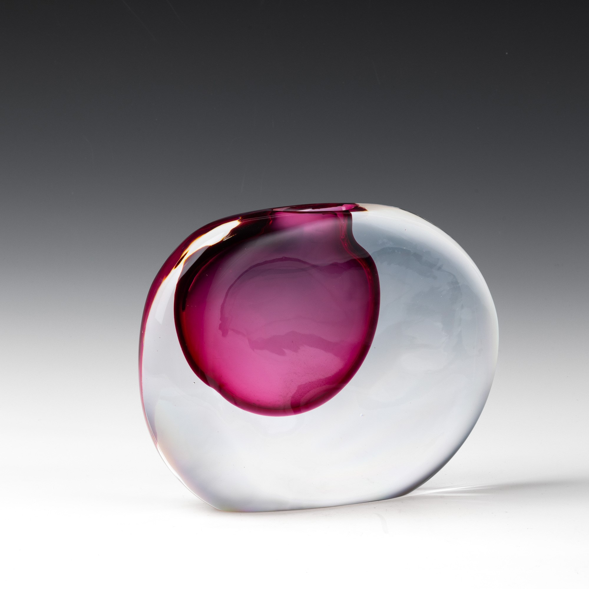 Vaso asimmetrico a sezione ovale in vetro pesante sommerso a due colori.