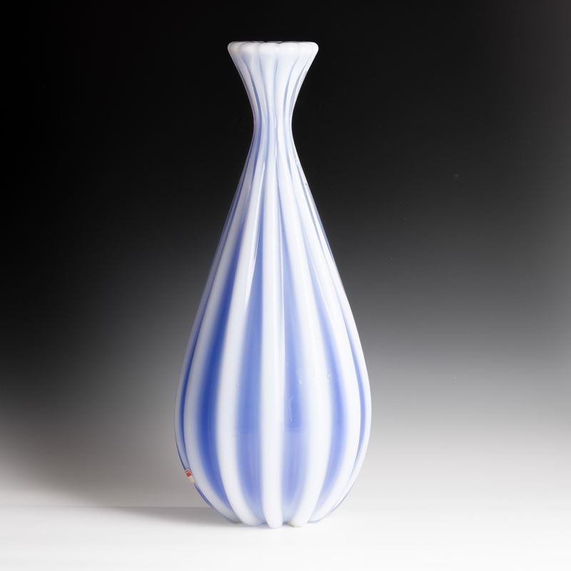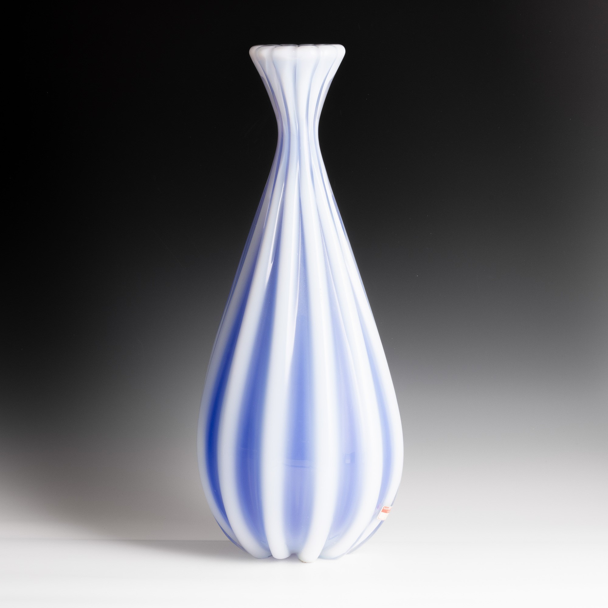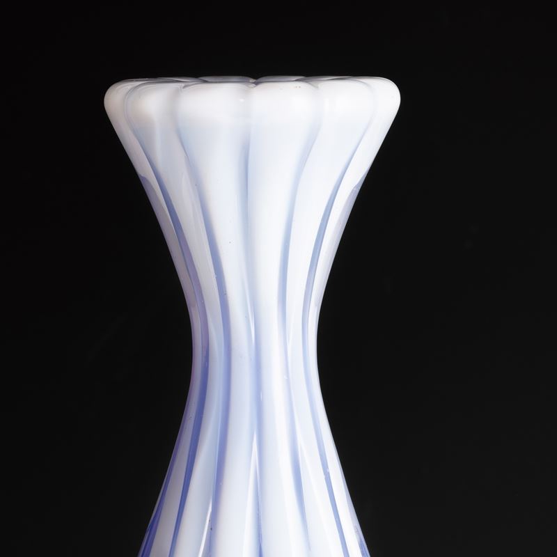 Grande base di lampada in vetro opalino a grosse costolature. Vecchia etichetta cartacea.