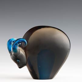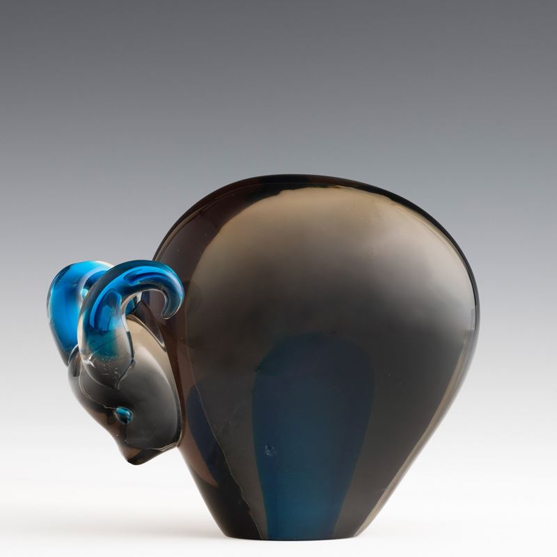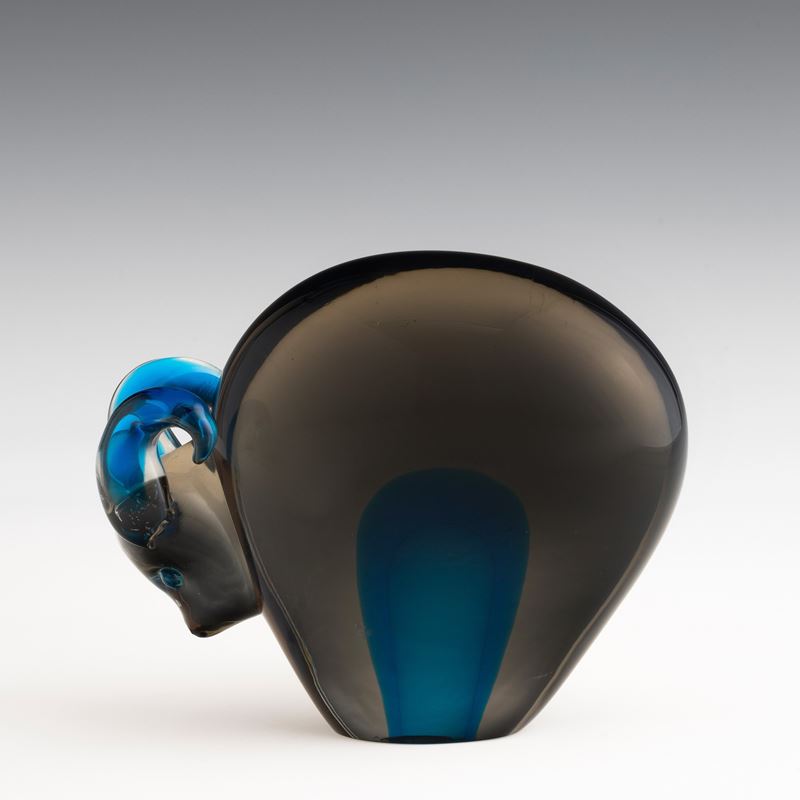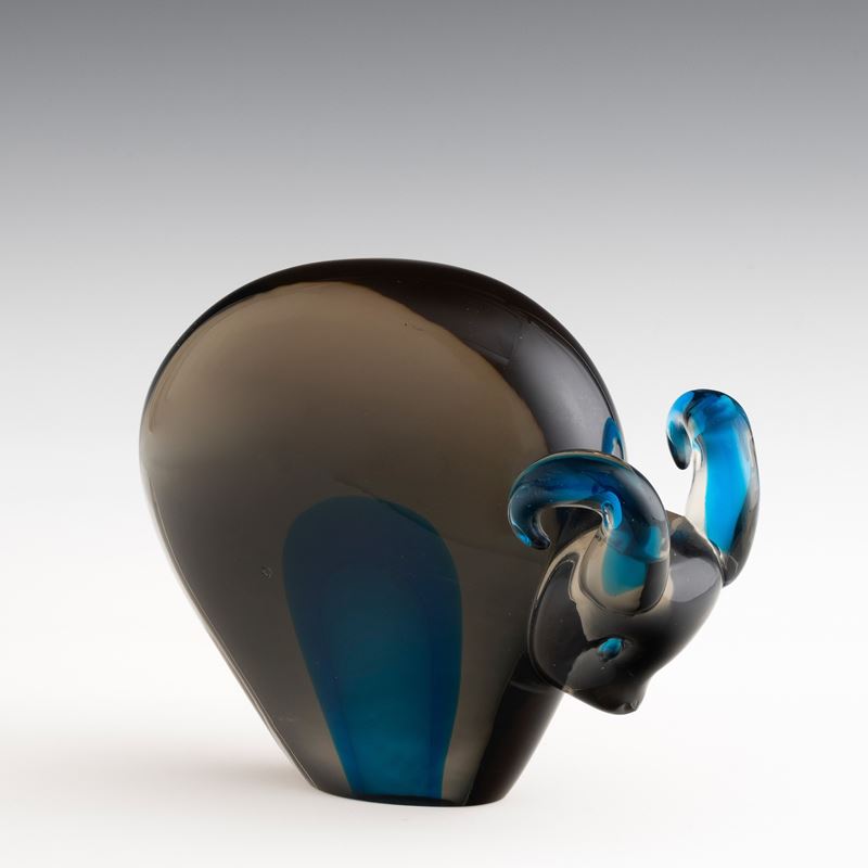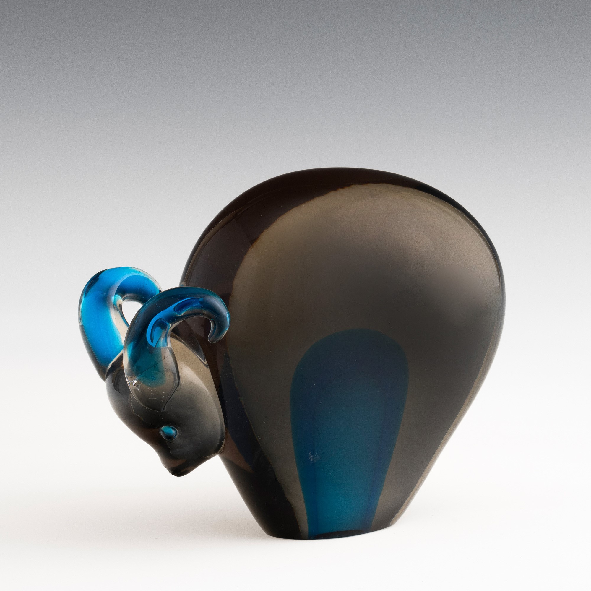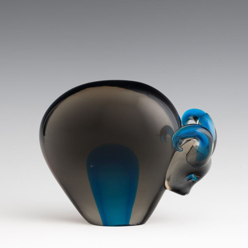 Soprammobile in forma di ariete in vetro pesante modellato a caldo.