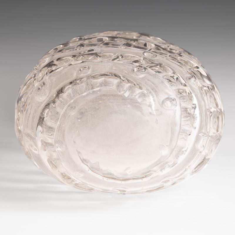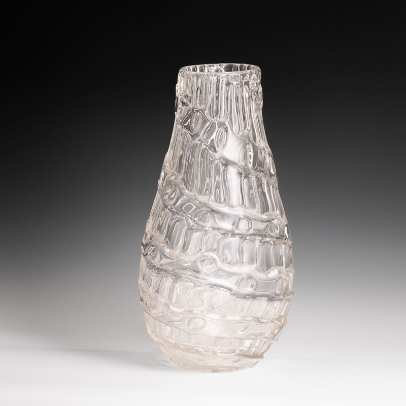 Vaso a goccia a sezione ovale in vetro pesante con cordoli irregolari applicati a caldo.