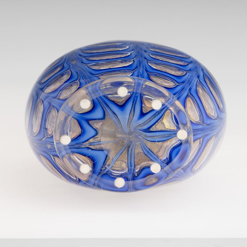 Firma a punta Ercole Barovier 1968 ed etichetta del rivenditore.