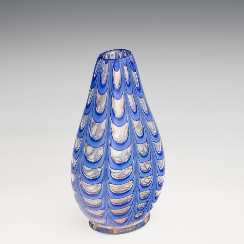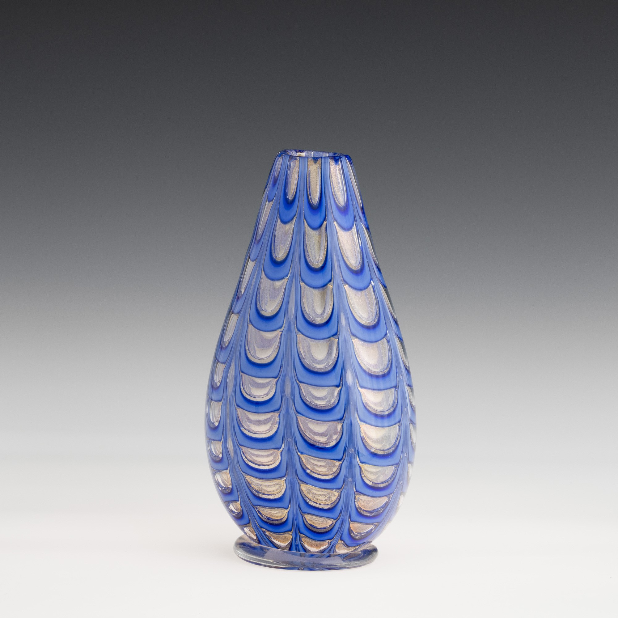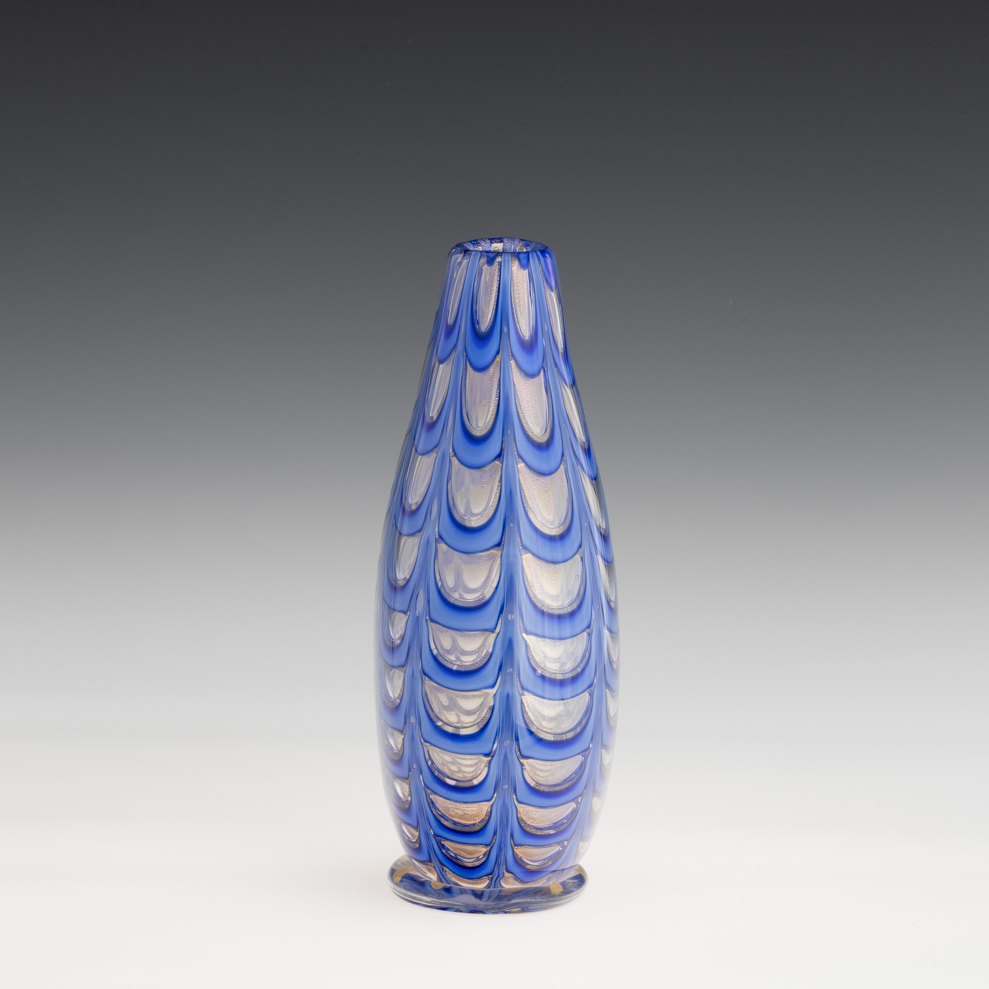 Vaso serie Graffiti in vetro soffiato a festoni con inclusione di foglia oro.