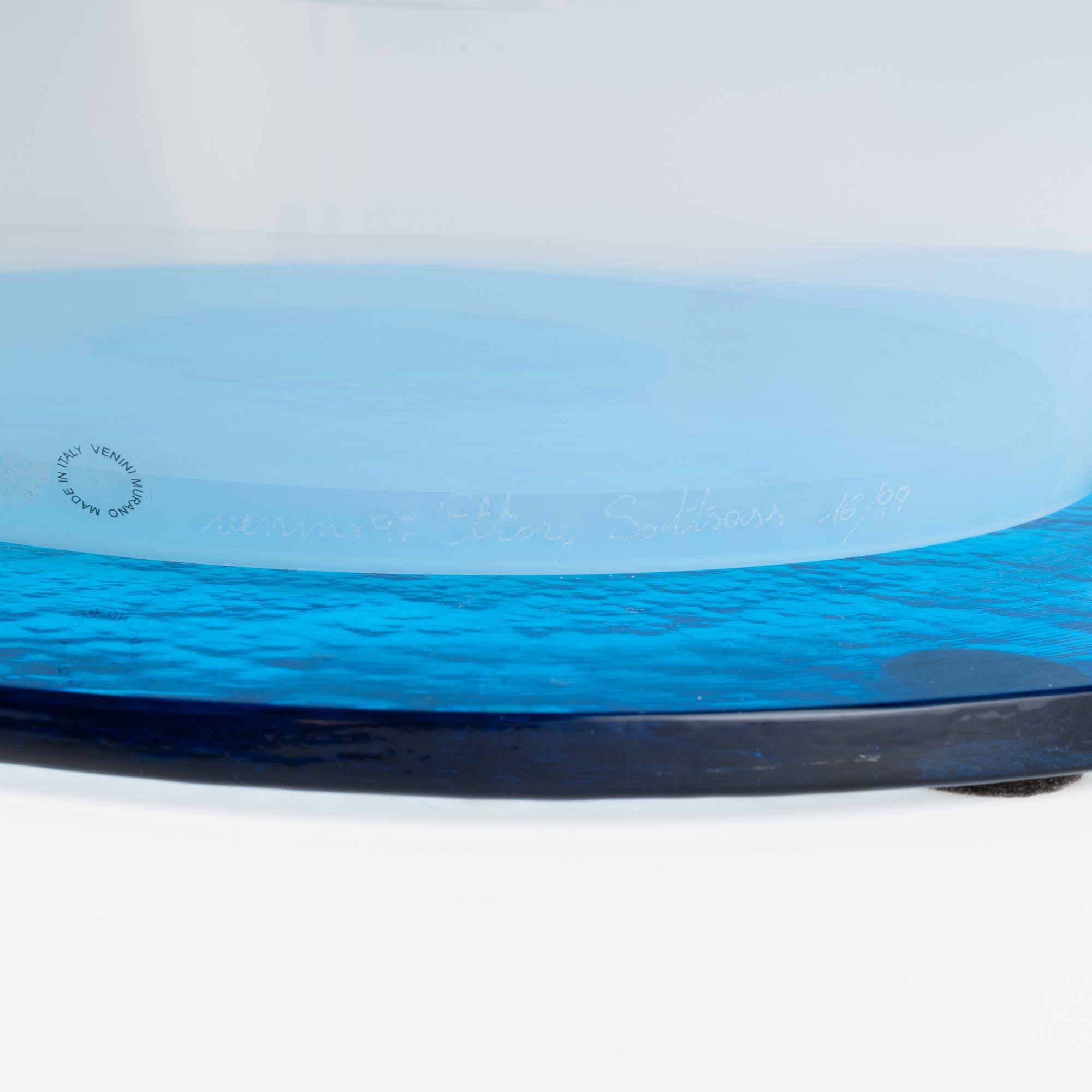 Firma a punta Venini 97 Ettore Sottsass 16/99 e vecchia etichetta.