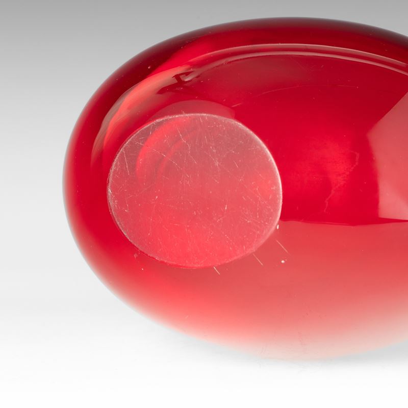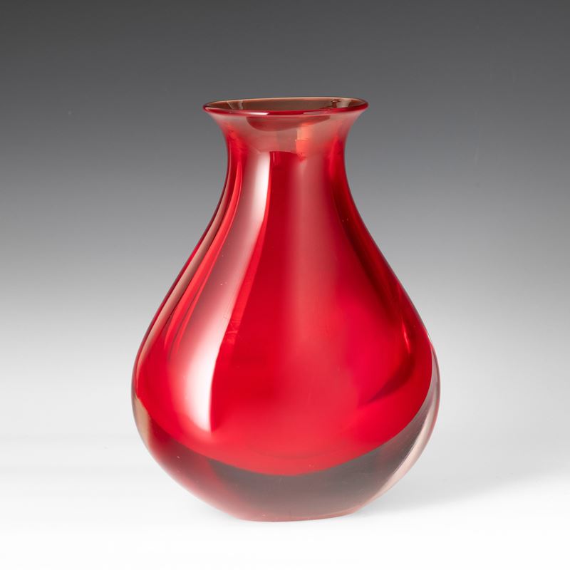 Vaso a goccia con collo svasato in vetro sommerso rosso.