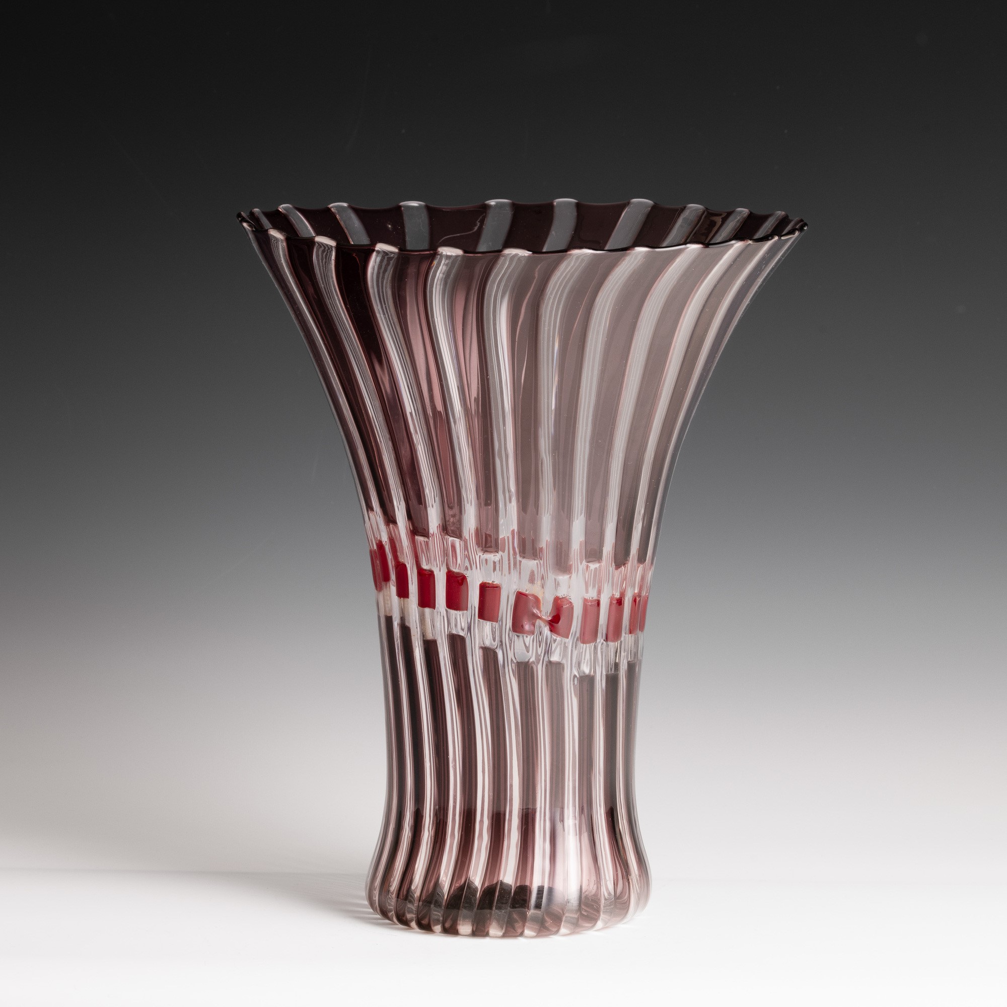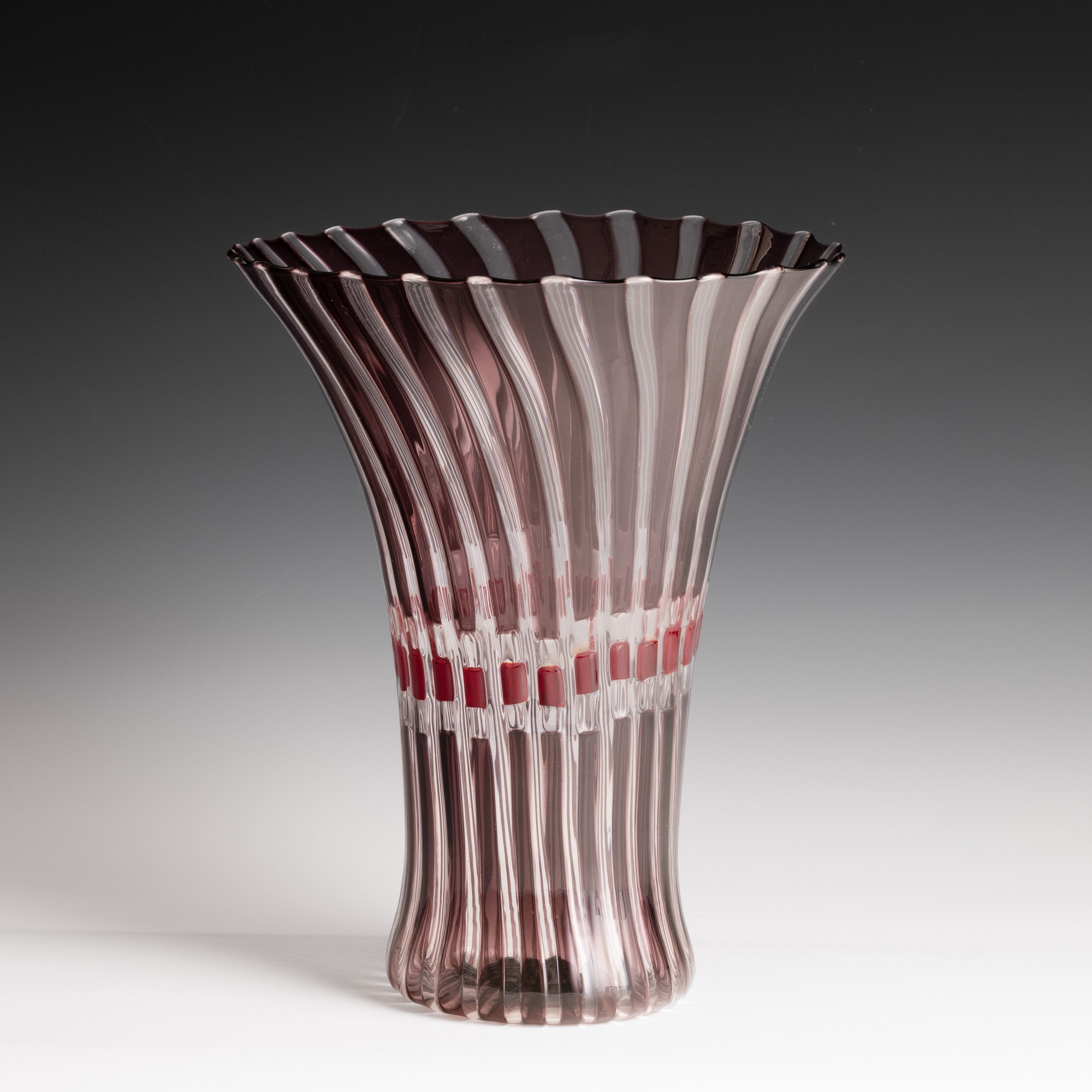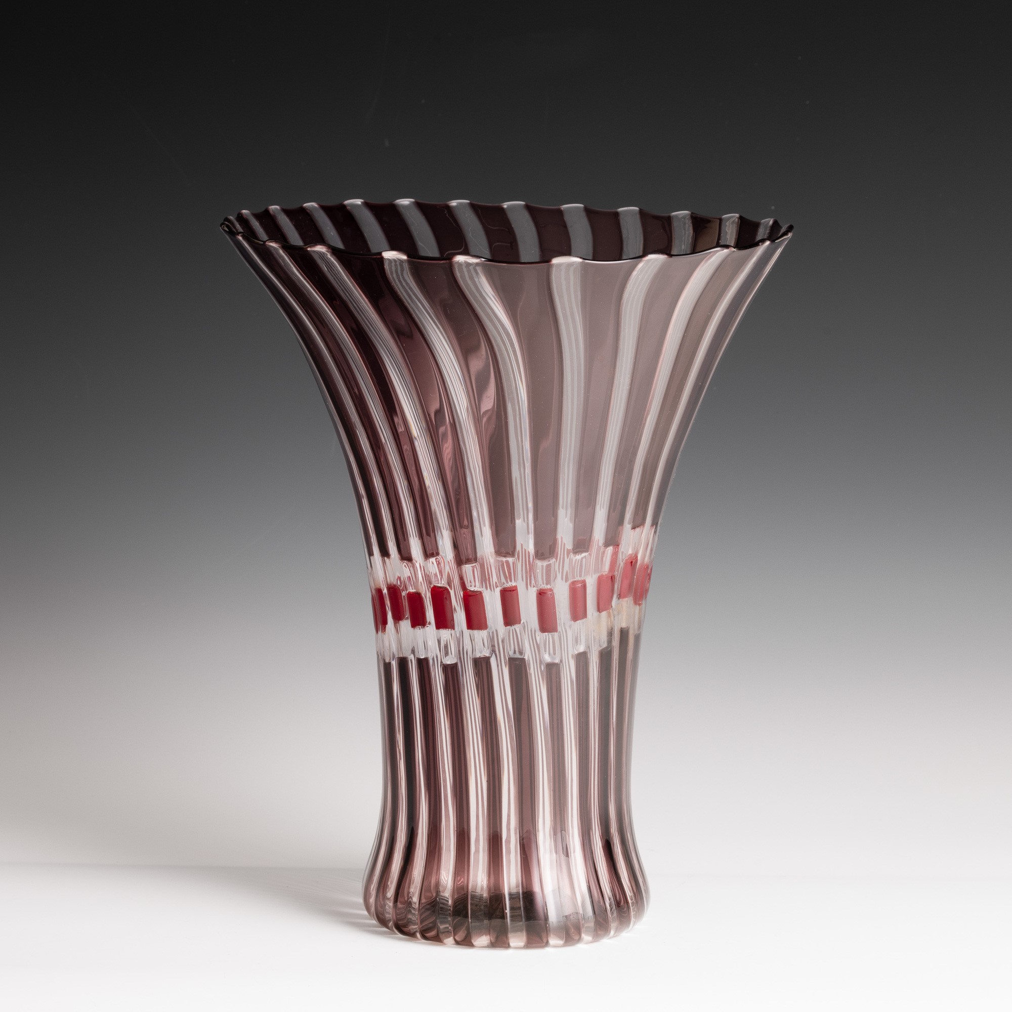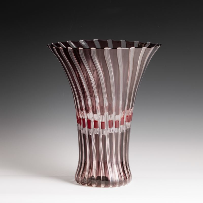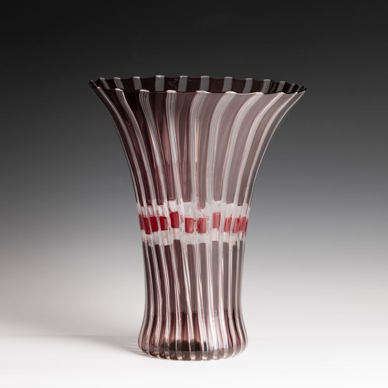 Vaso serie Flora in vetro soffiato con decoro di canne policrome.