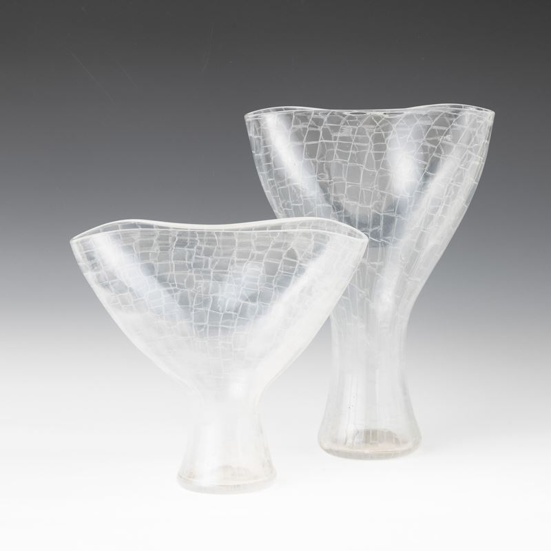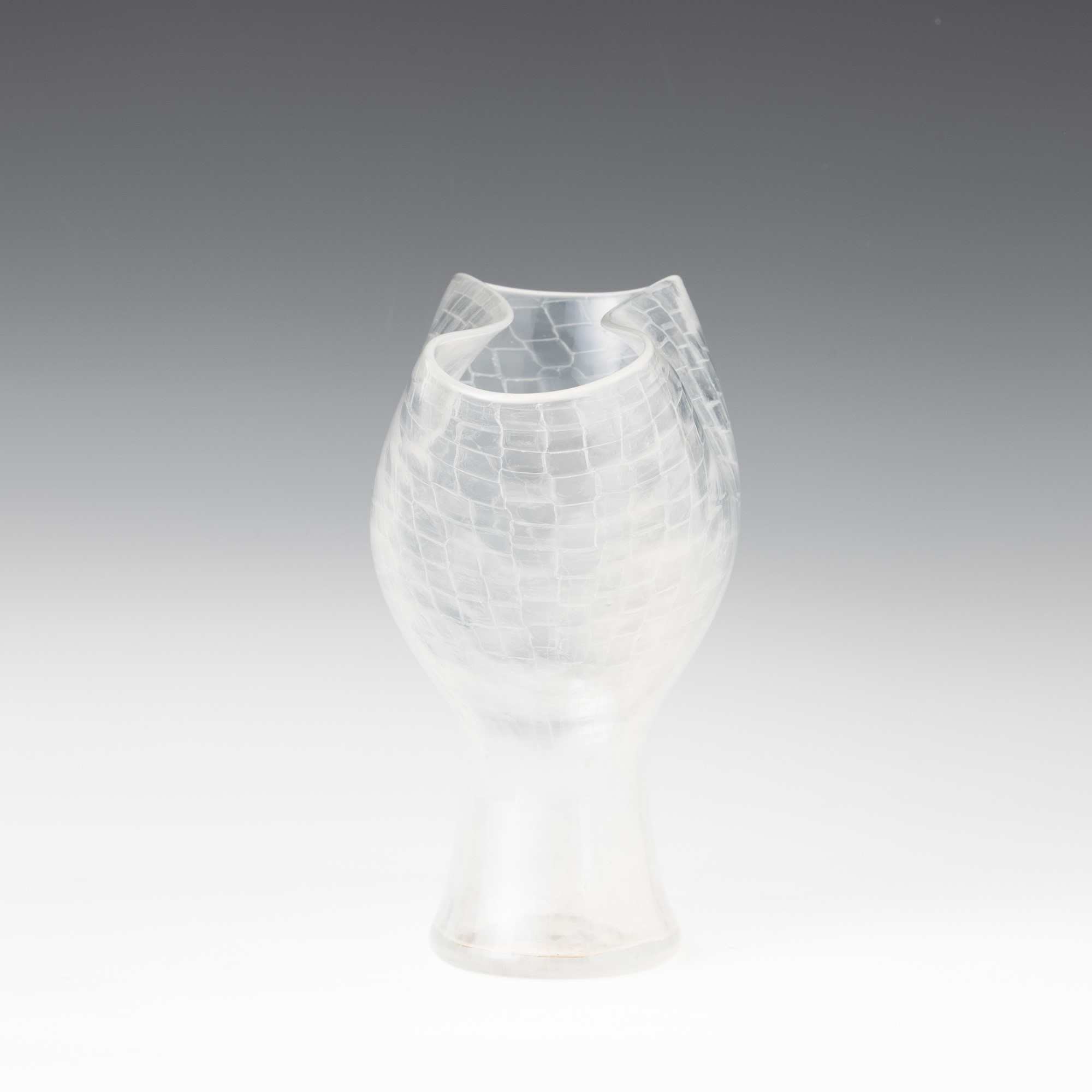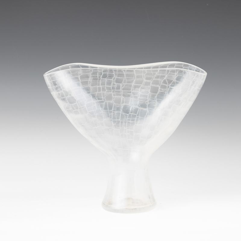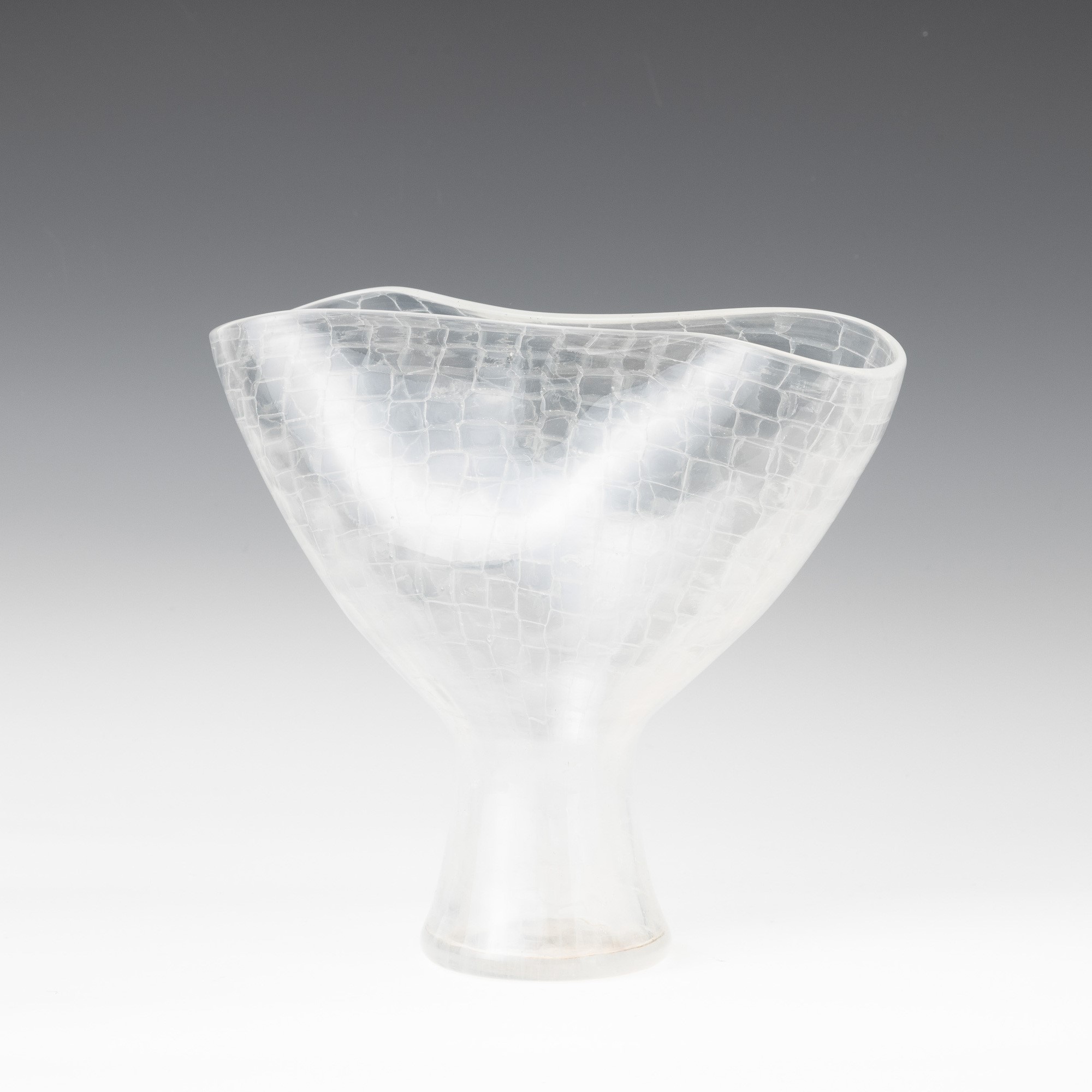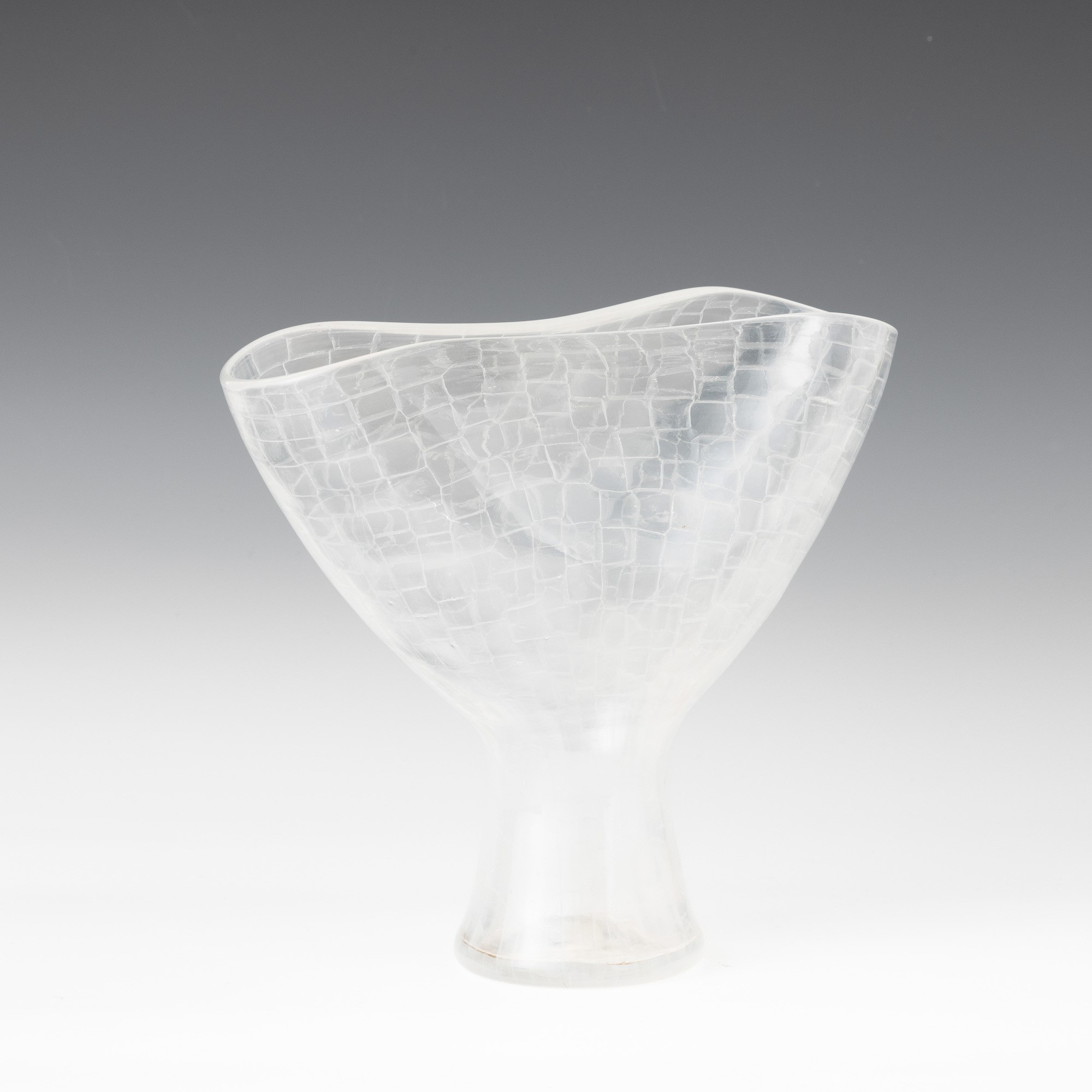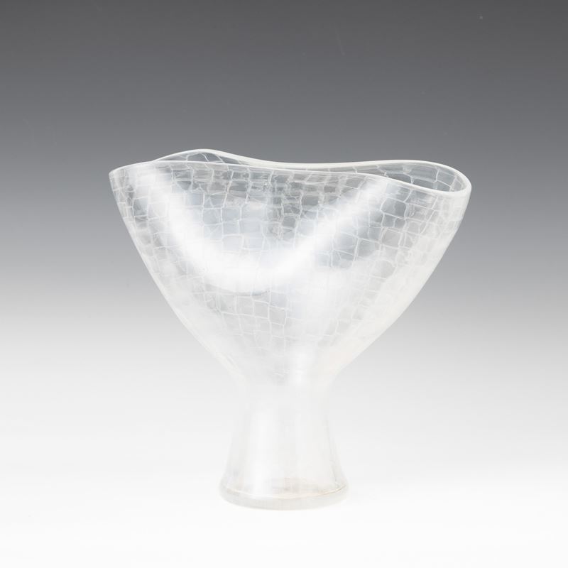 Vaso a ventaglio serie Akab in vetro soffiato con decoro di mosaico di murrine trasparenti.