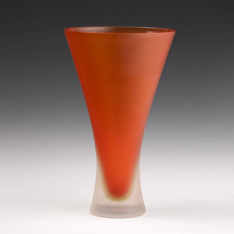Vaso a tromba serie Incisi Corniola in vetro sommerso a due colori con superficie interamente lavorata alla mola.