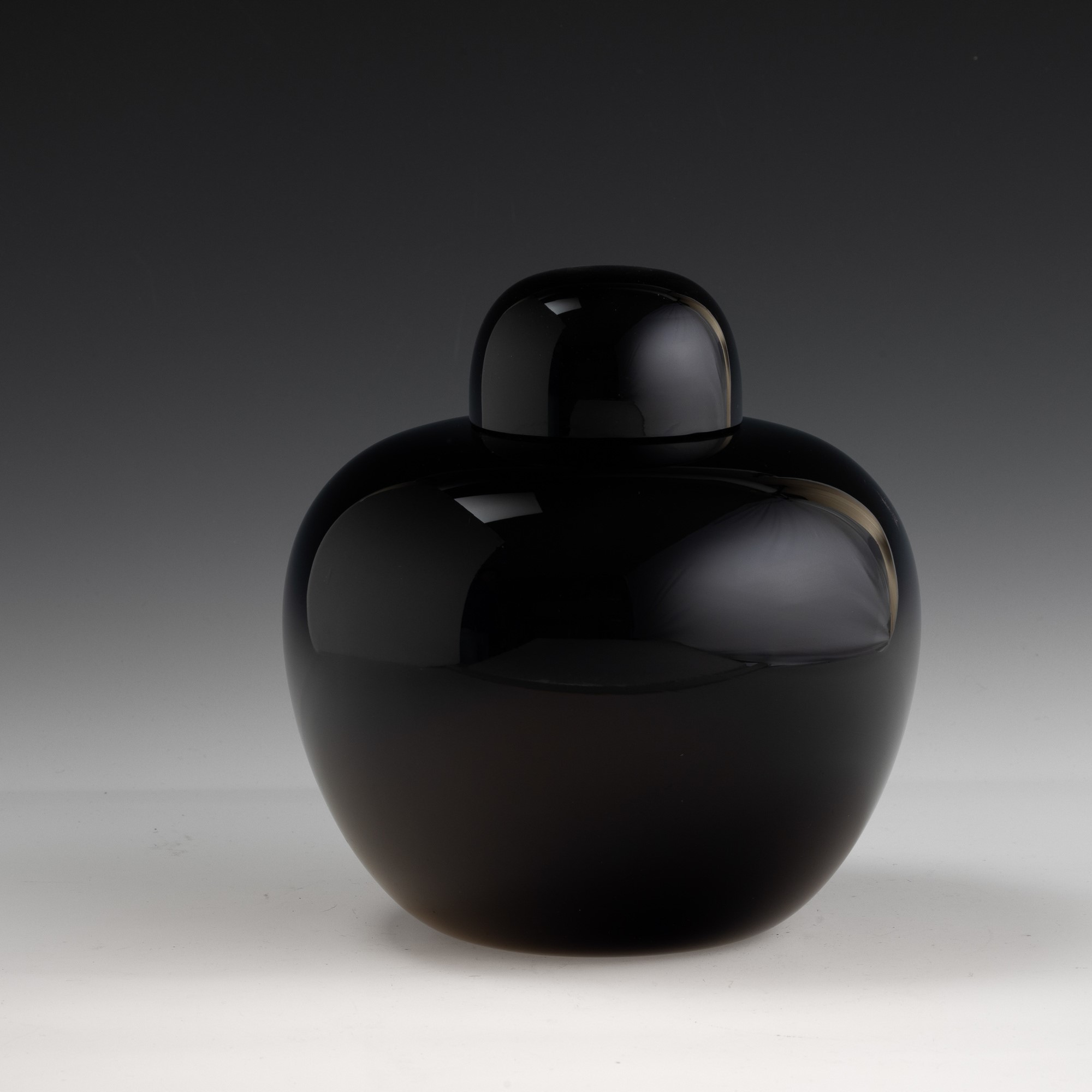 Vaso con coperchio serie Cinesi in vetro opalino nero.