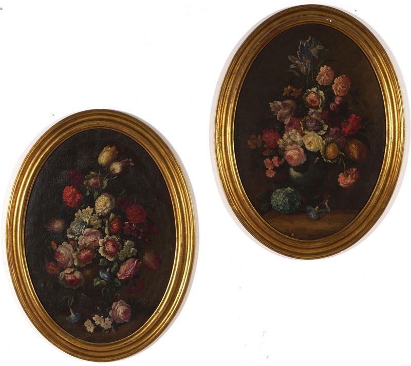 Scuola del XVIII secolo Nature morte con vasi di fiori
