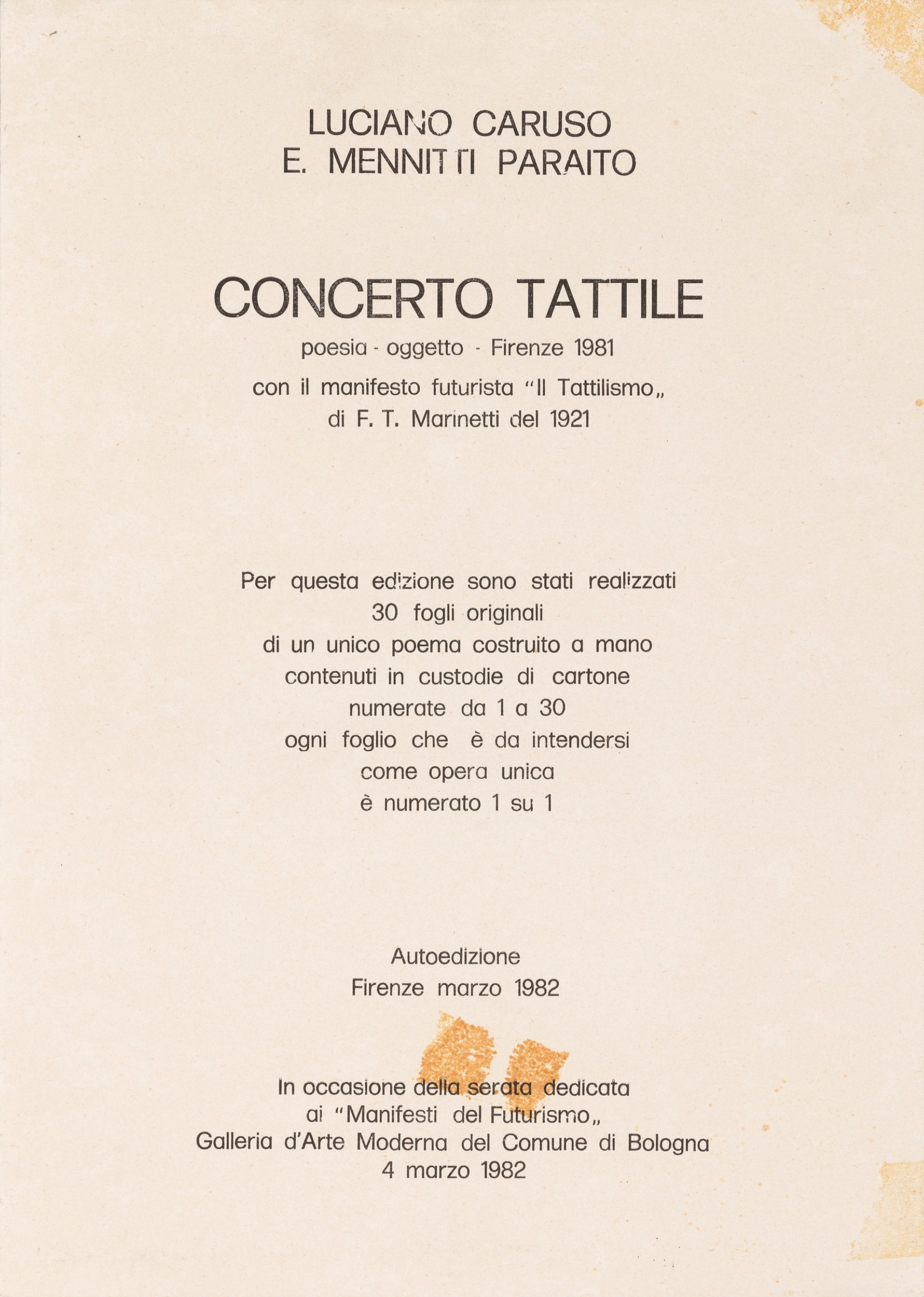 Concerto tattile , 1981