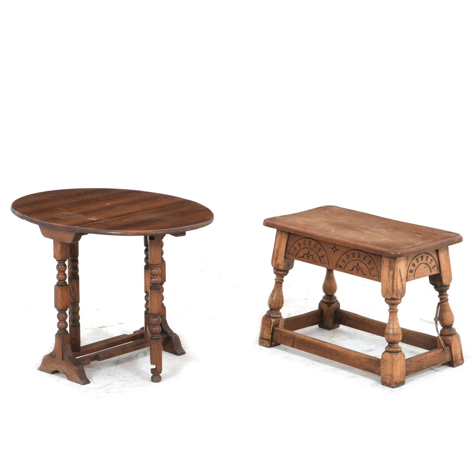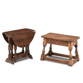 Lotto composto da un piccolo tavolino ad alette e un tavolino intagliato