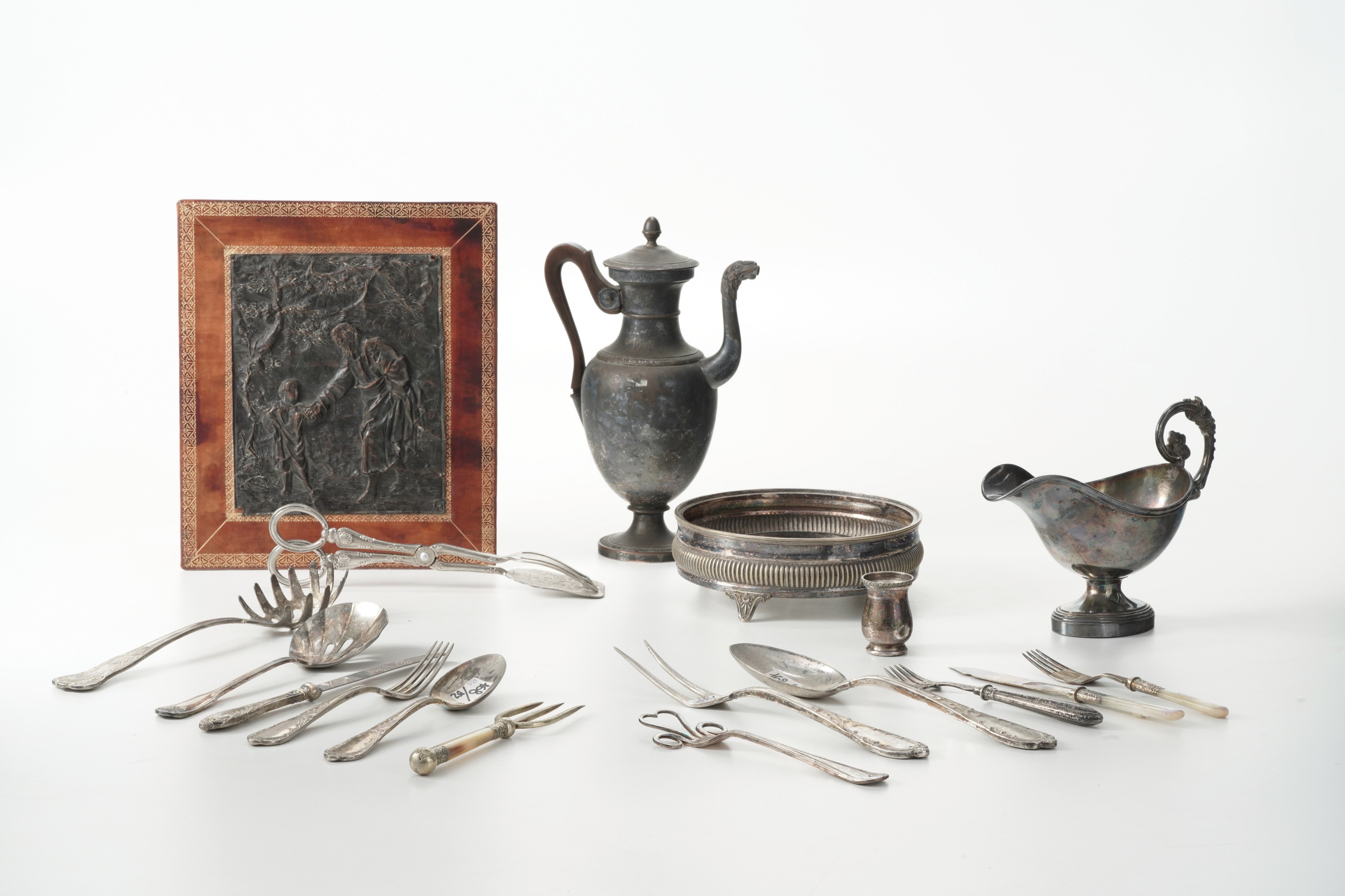Tra cui posate da portata, un rilievo decorativo, una salsiera e una caffettiera