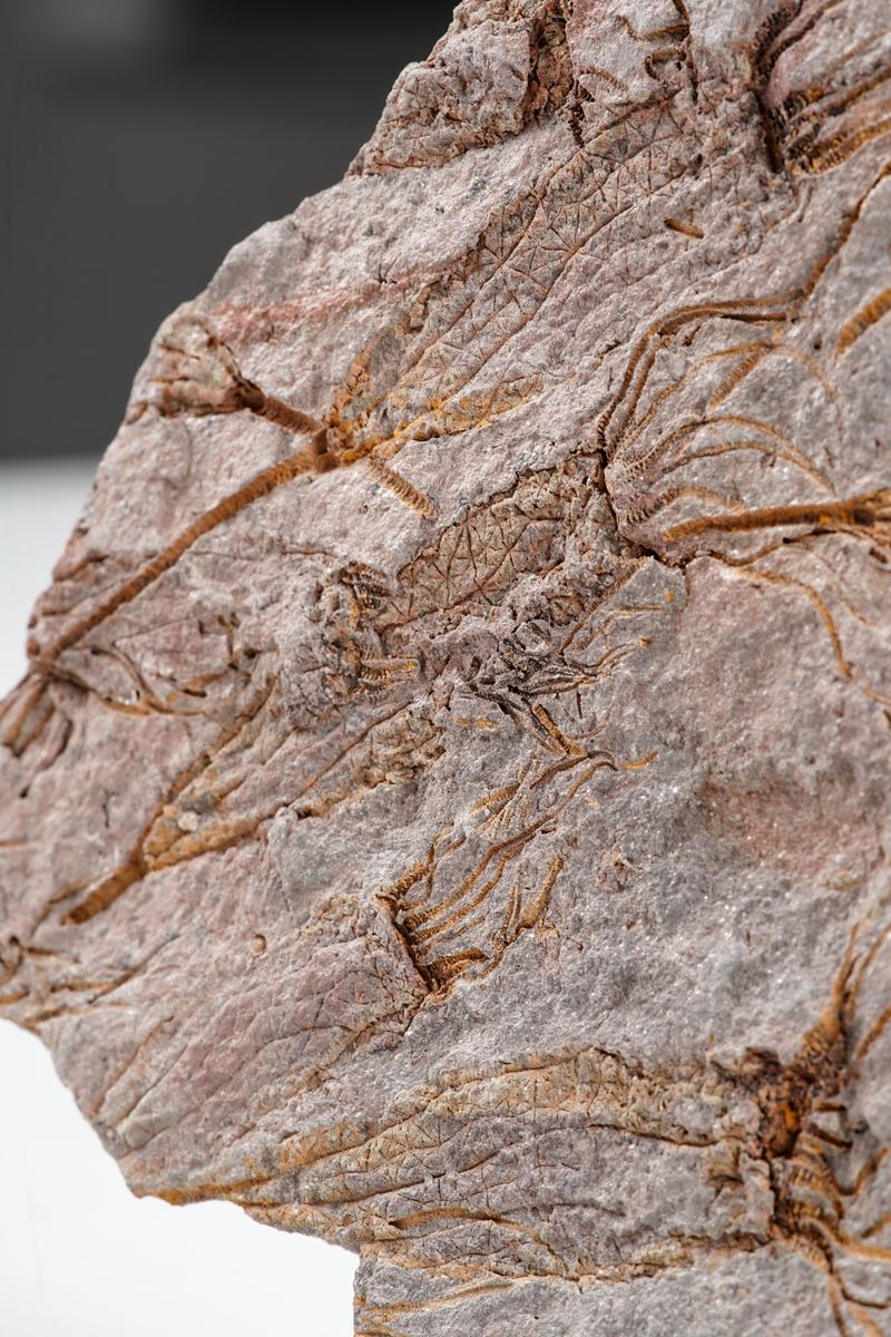 Rara lastra con crinoidi fossili sul fronte e sul retro.