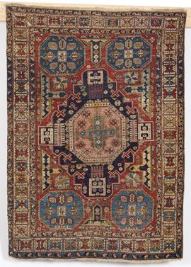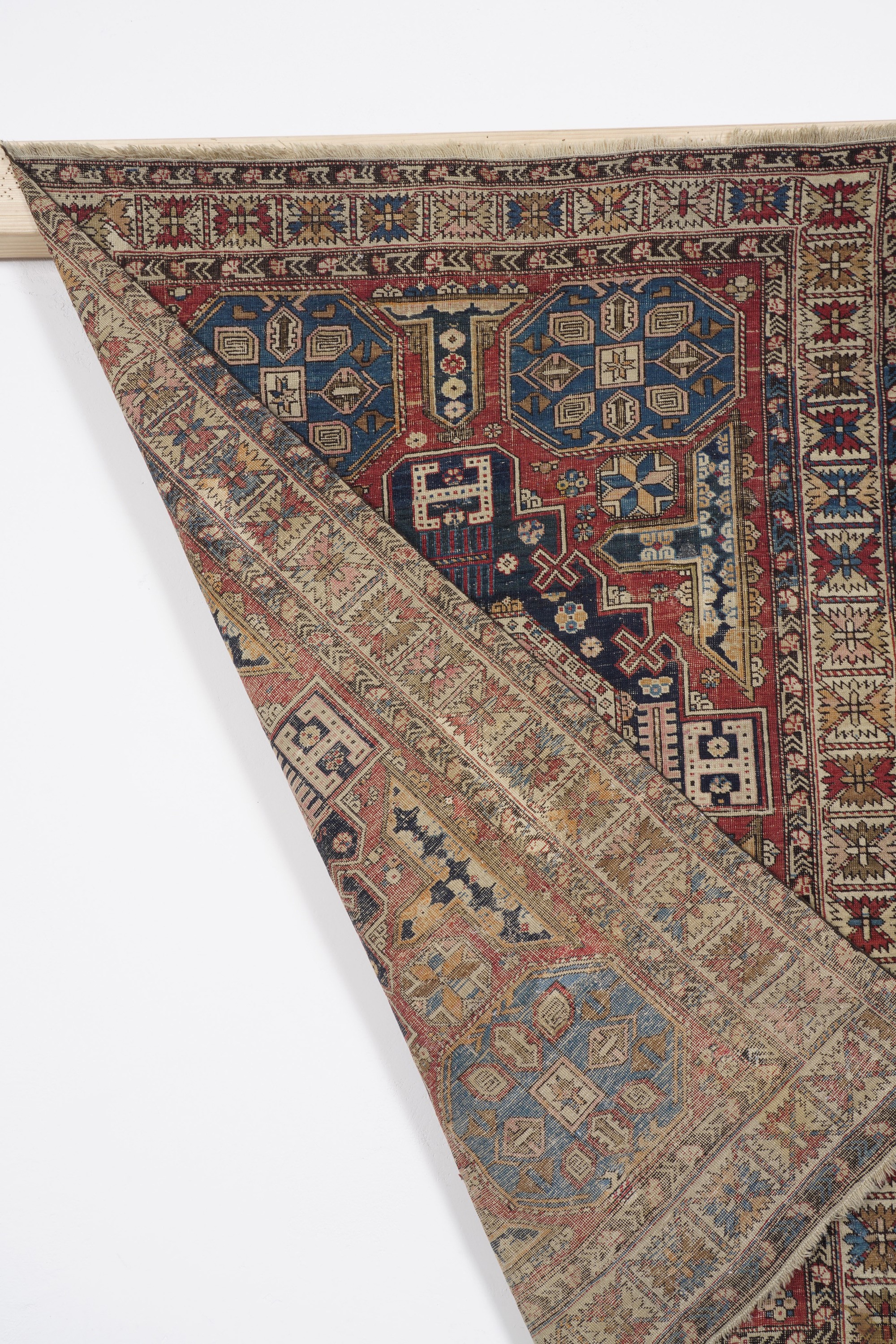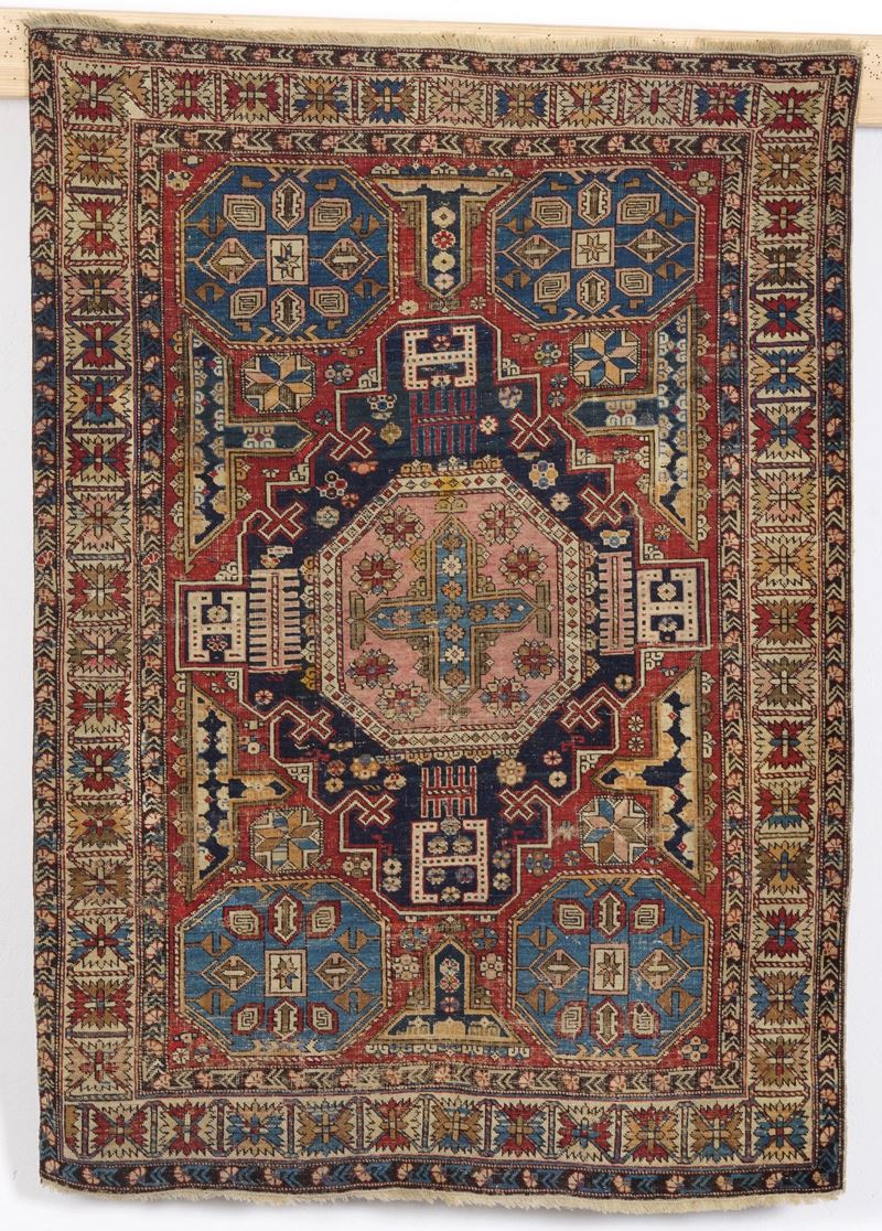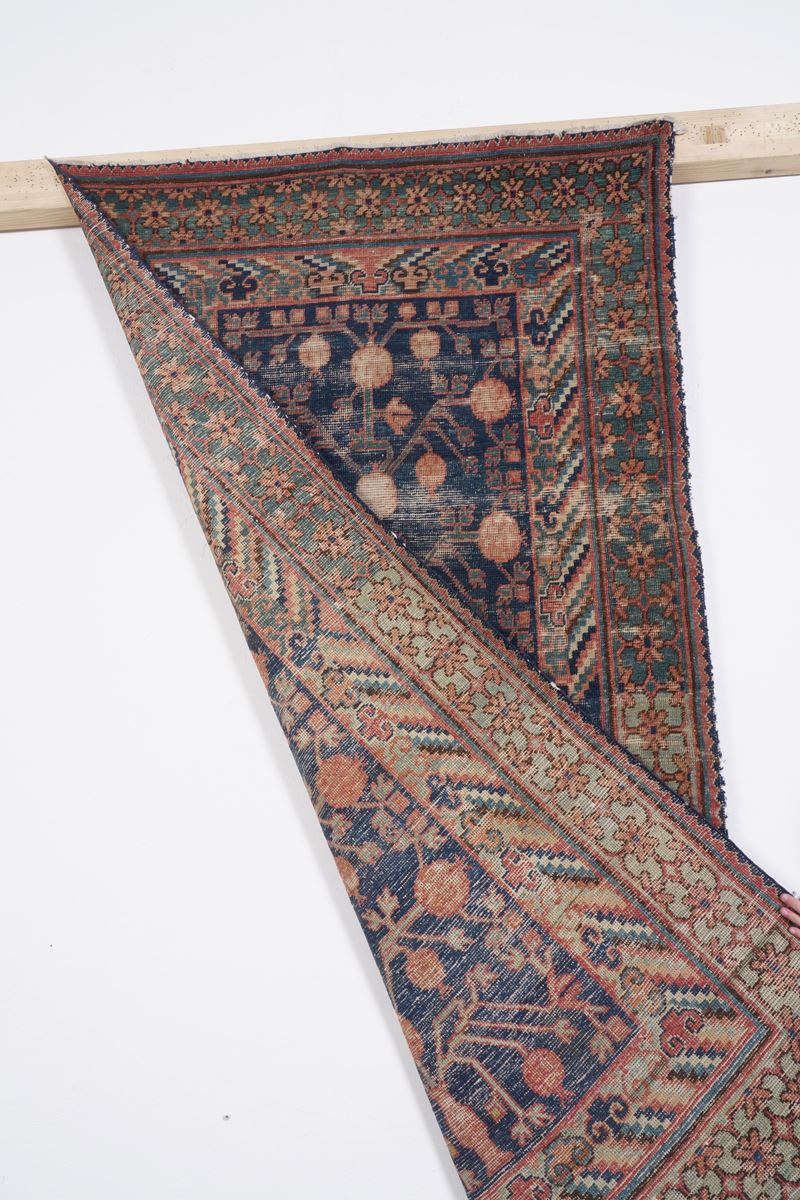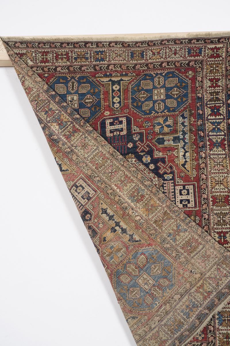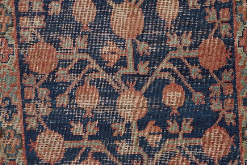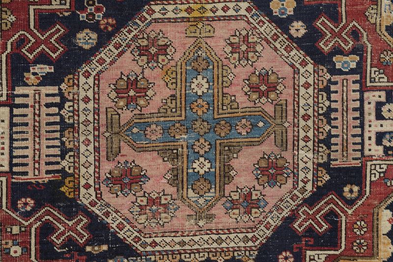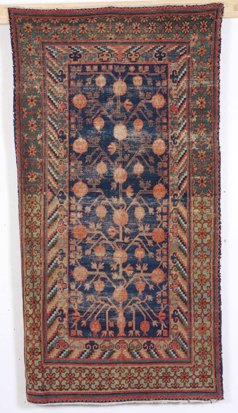 Lotto di due tappeti uno Samarcanda inizio XX secolo campo blu con melograni e uno Shirvan Caucaso inizio XX secolo