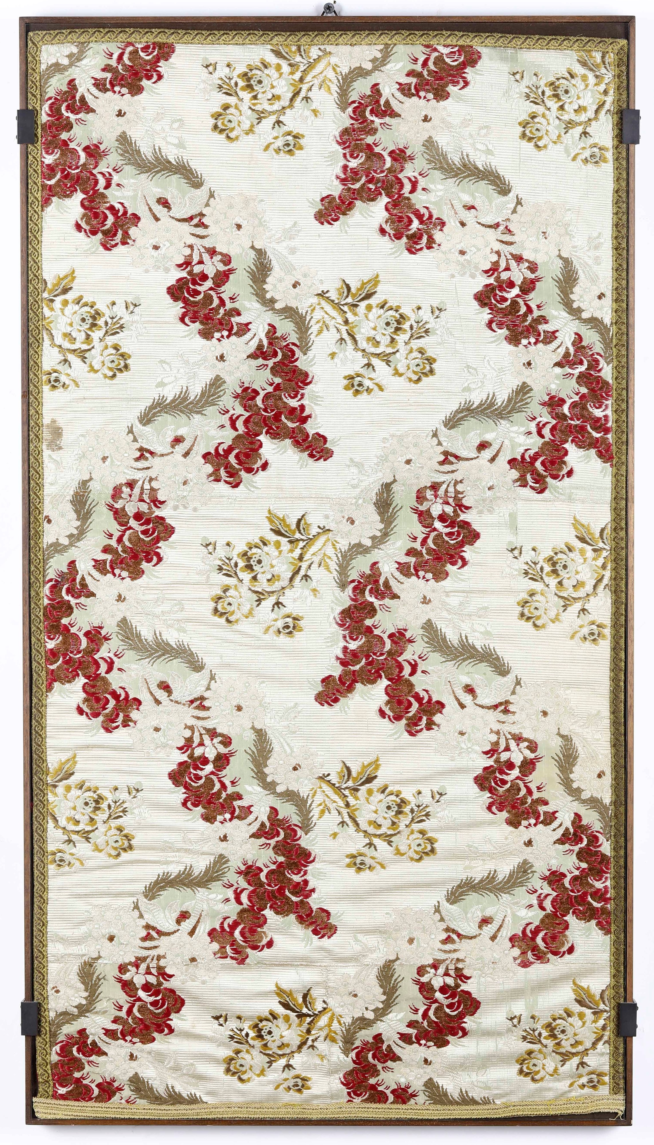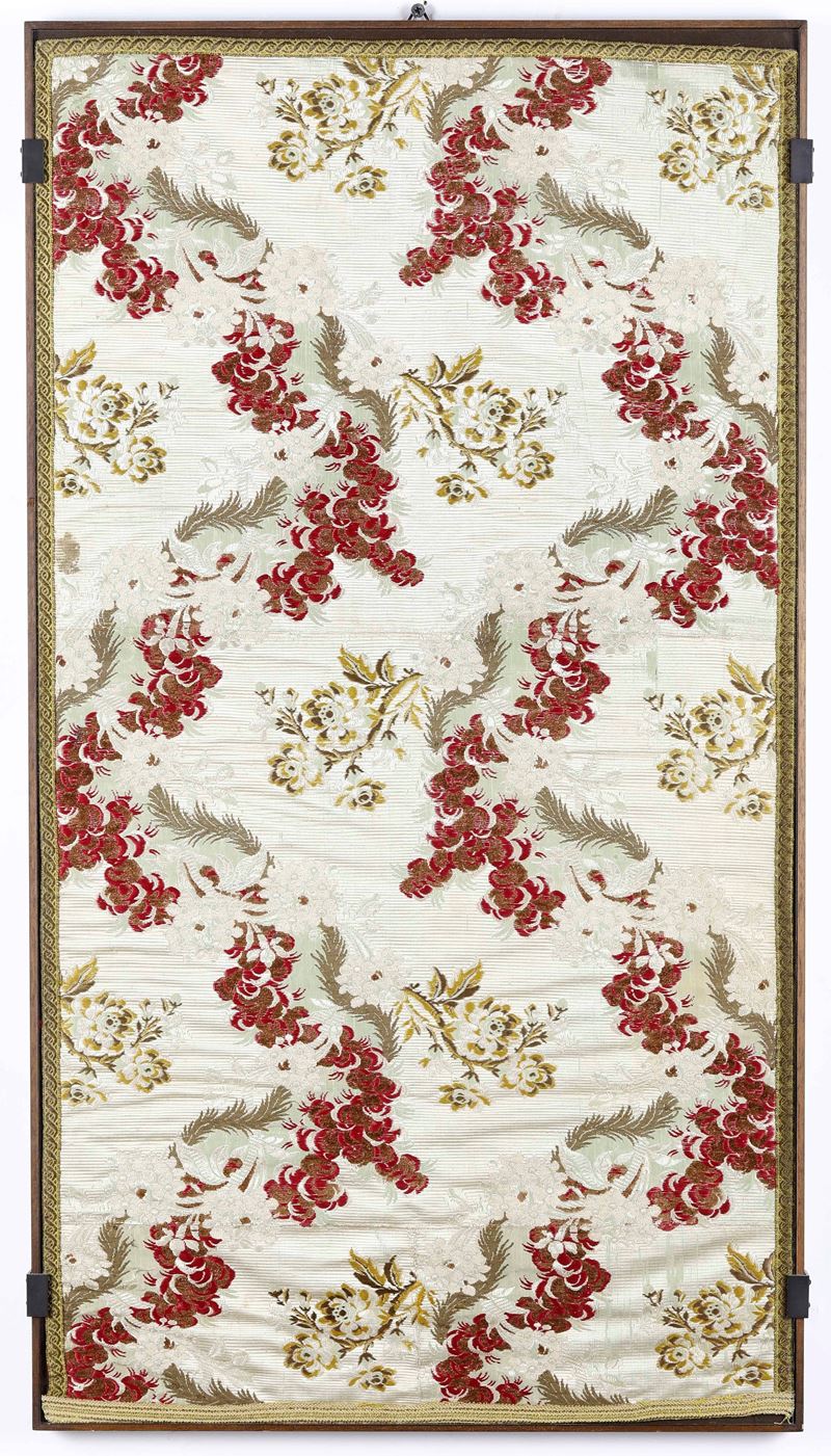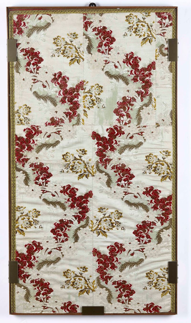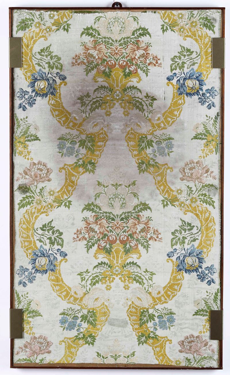 due lampasso broccato in seta Venezia seconda metà XVIII secolo cm 84x48, due tessuti in Taffetas cannellato broiccato Francia fine XVIII secolo