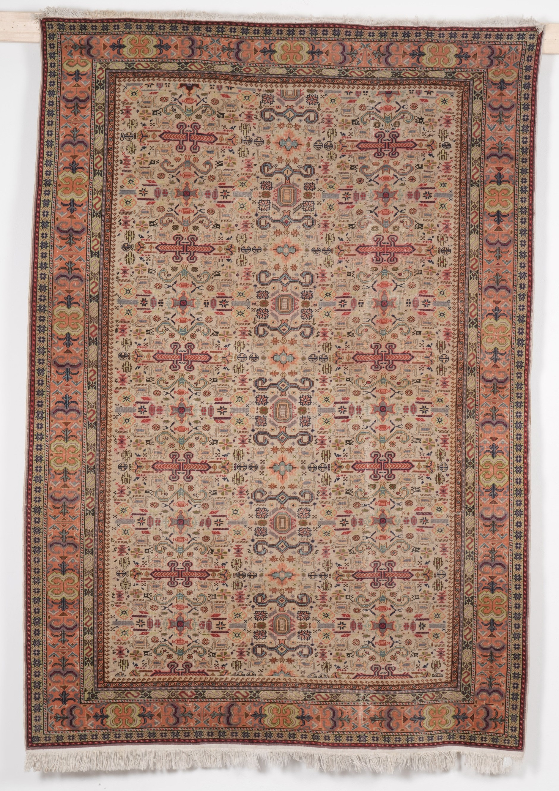 campo chiaro con motivi geometrici bordura salmone.