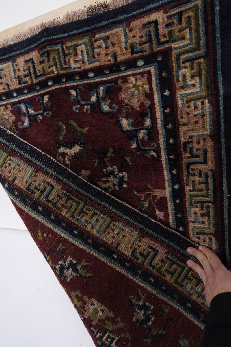 fondo marrone con medaglione centrale e fiori , bordura tridimensionale a linea di tuono.