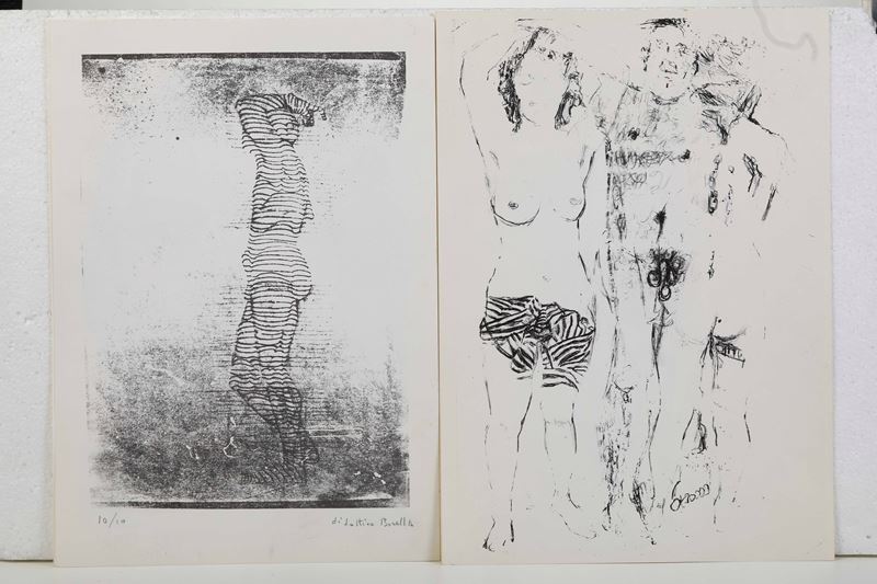 Lotto composto da tre grafiche di Rocco Borella e un anonimo, quattro cm 50x35, una cm 50x40