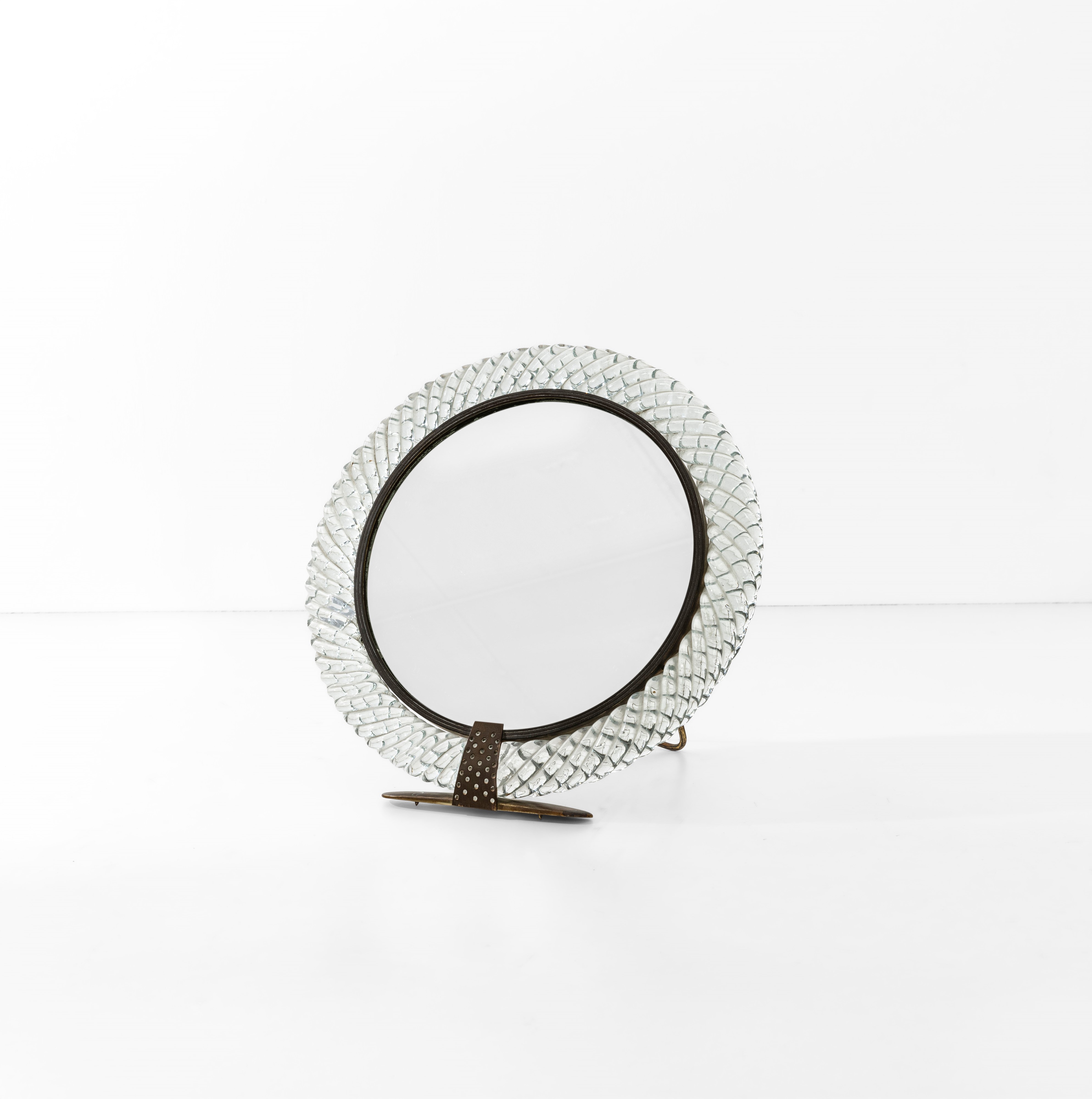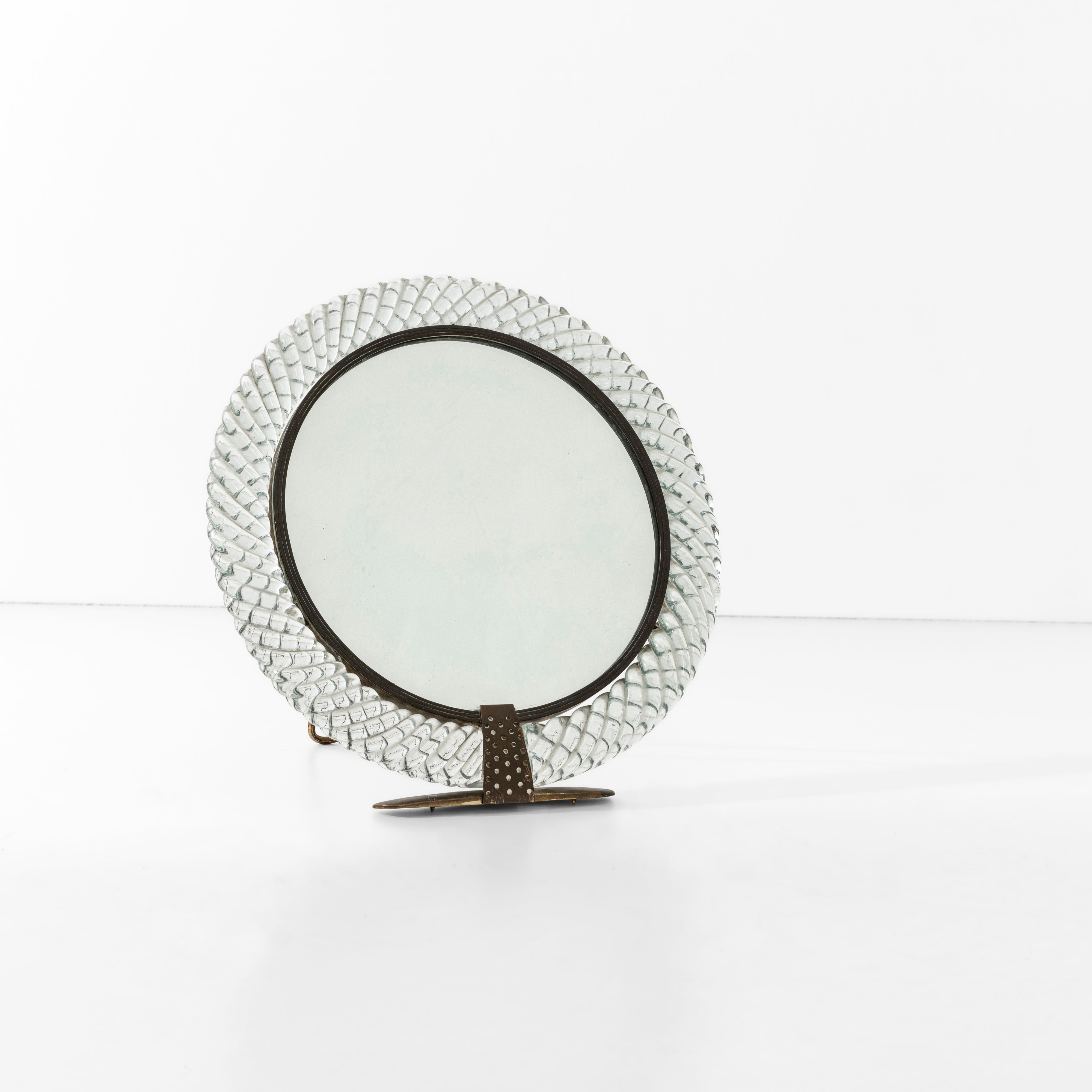 Struttura e supporto in ottone e cornice in vetro di Murano a treccia.