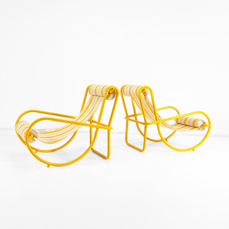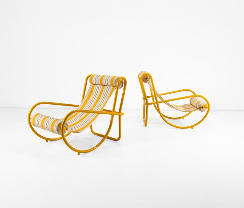 Due sedie a dondolo della serie Locus Solus.