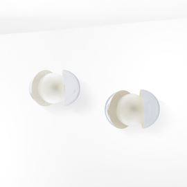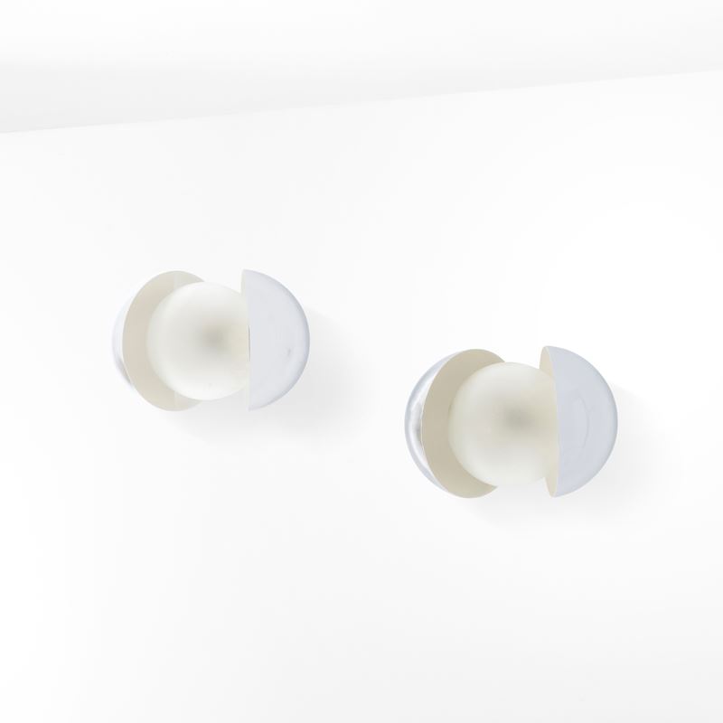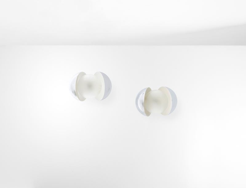 Struttura mobile in ottone cromato e diffusore in vetro satinato.