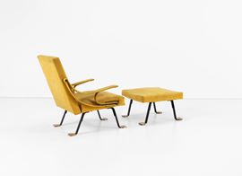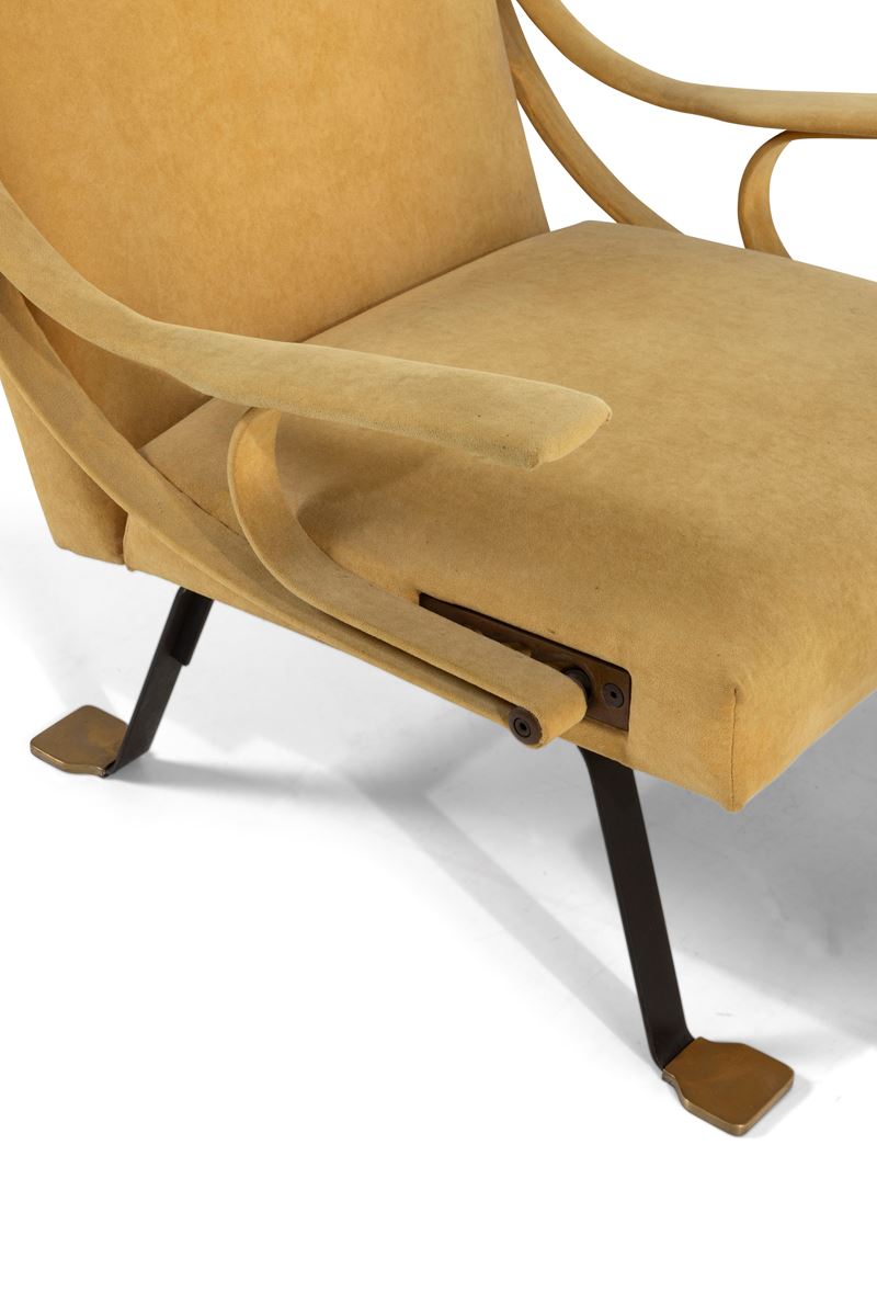 Struttura in metallo laccato e dettagli in ottone. Rivestimento in velluto.