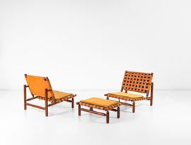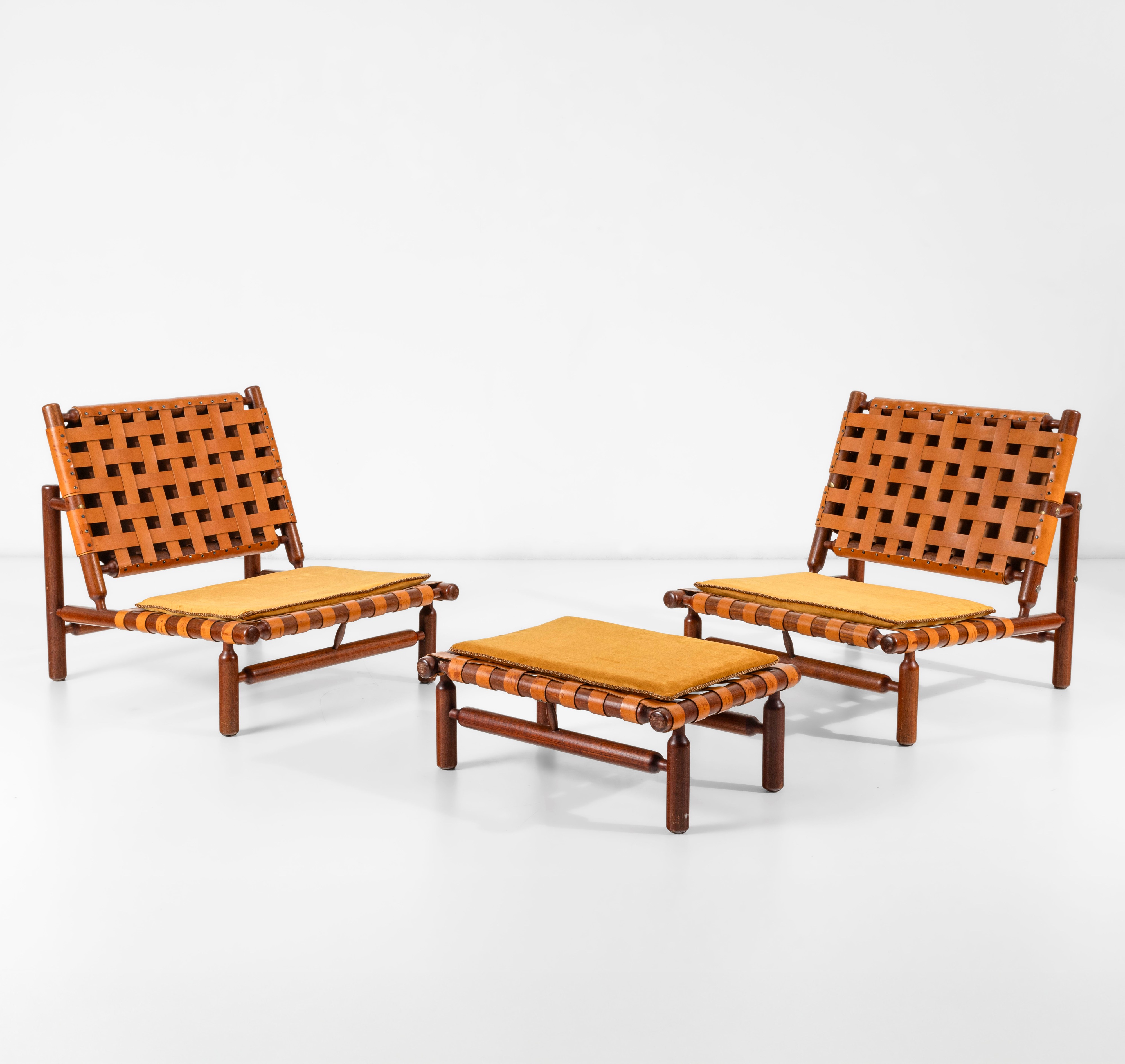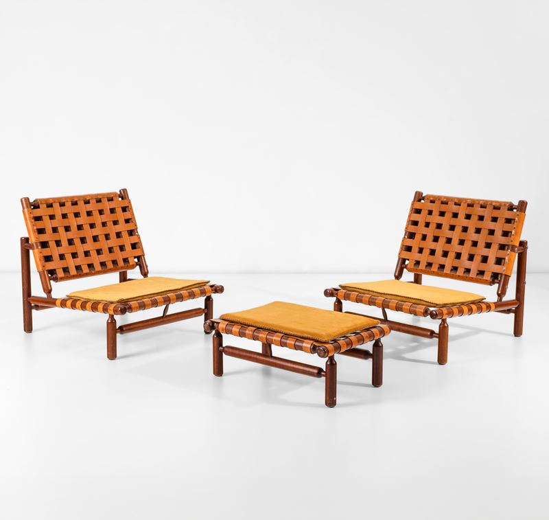 Set di due poltrone e poggiapiedi.