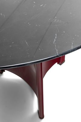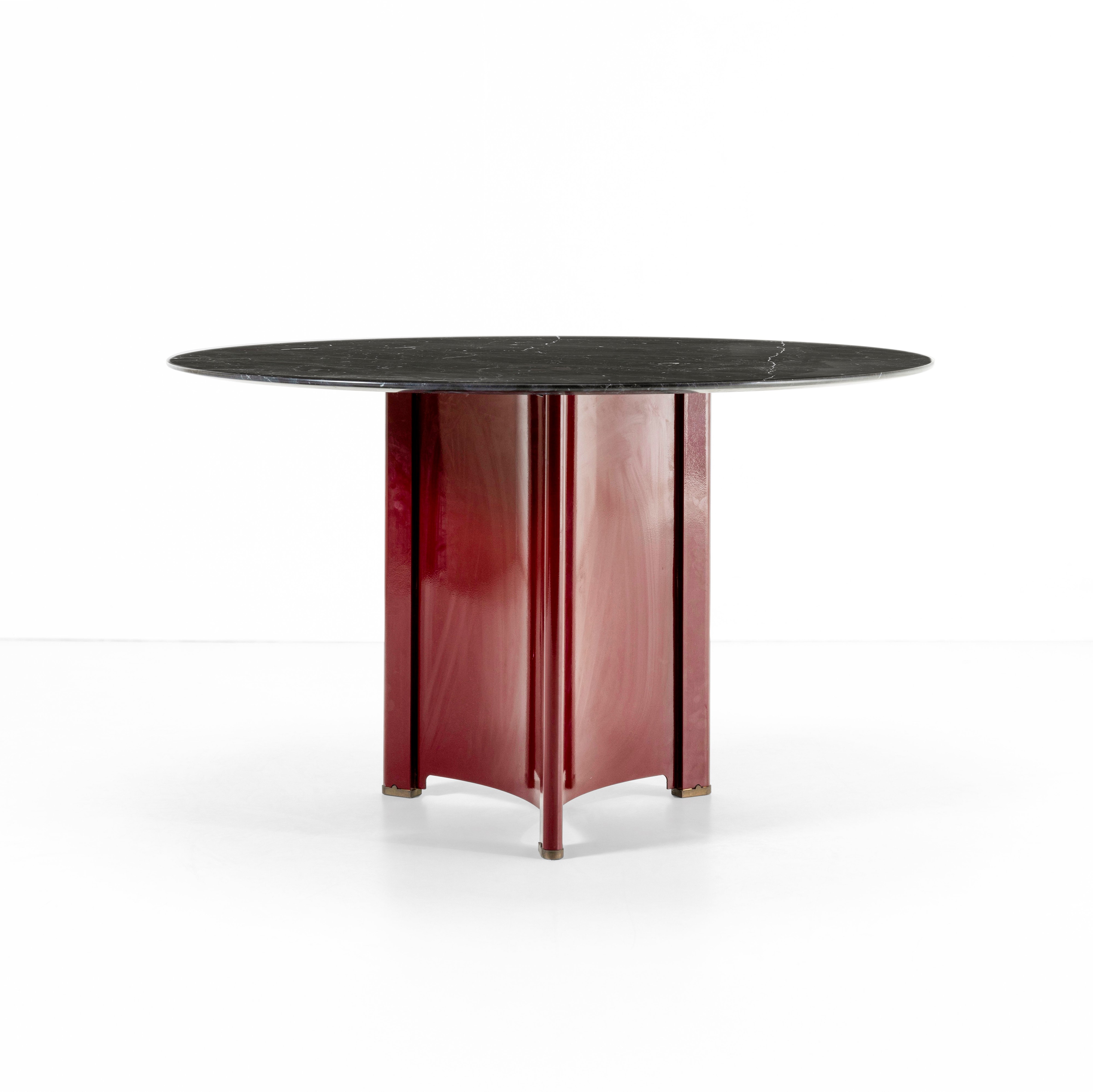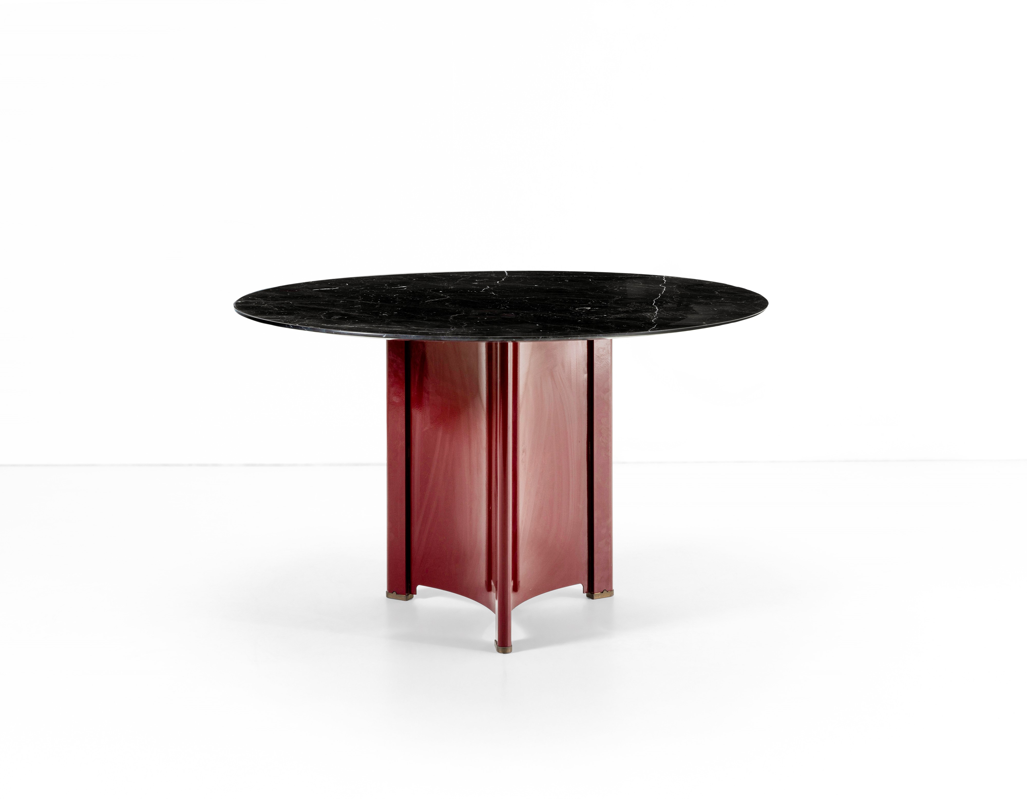 Struttura in metallo laccato, piano circolare in marmo.