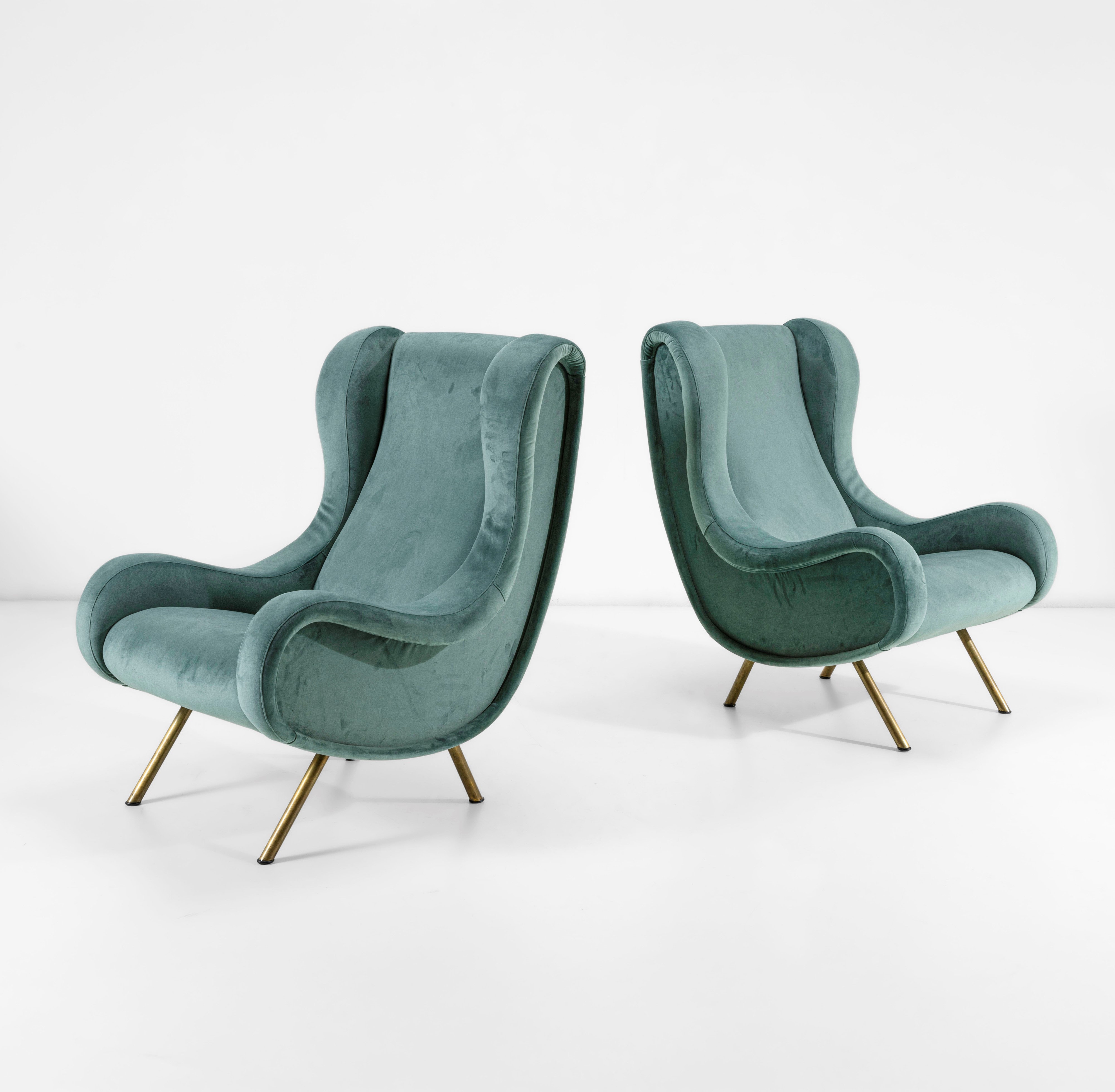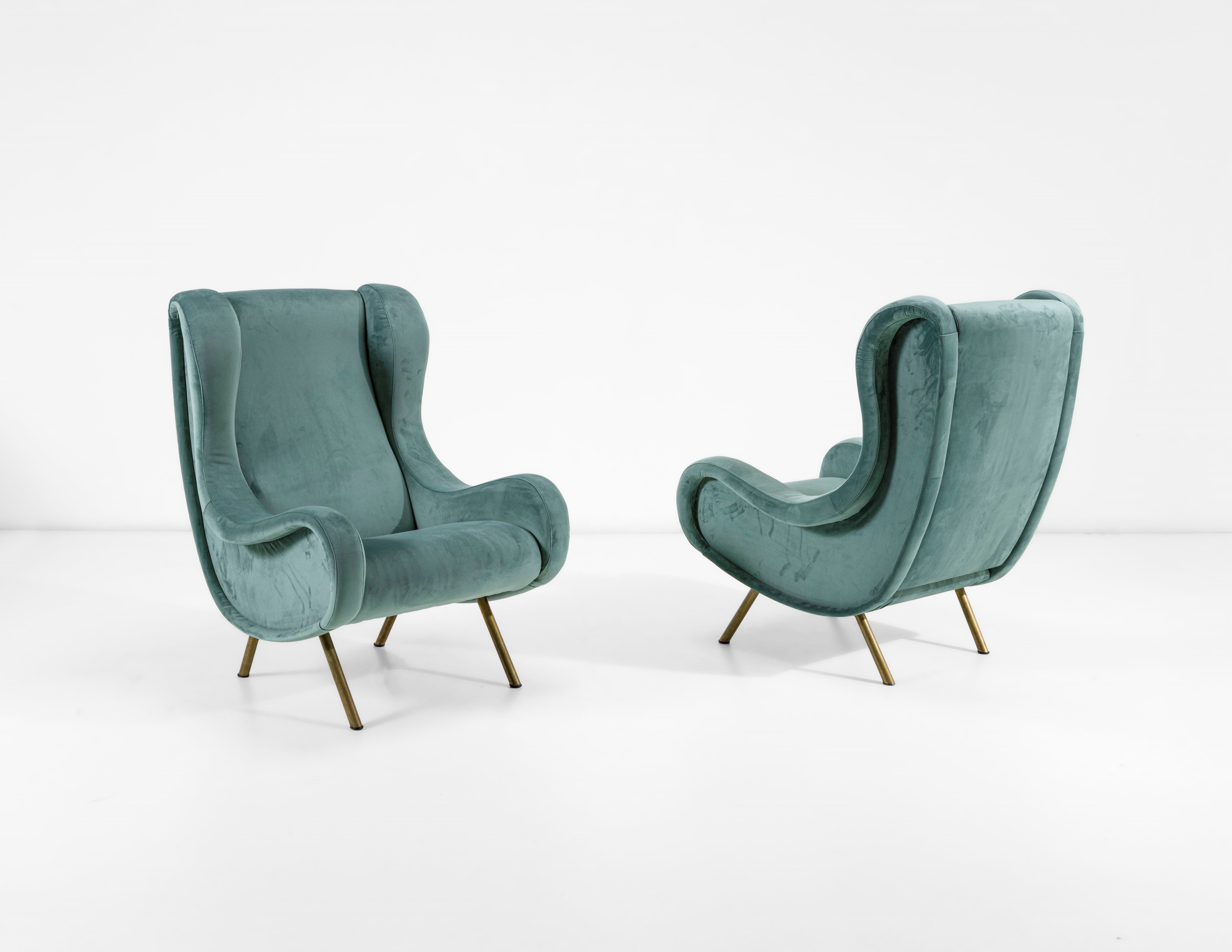 Struttura in metallo, sostegni in ottone e rivestimenti in velluto.