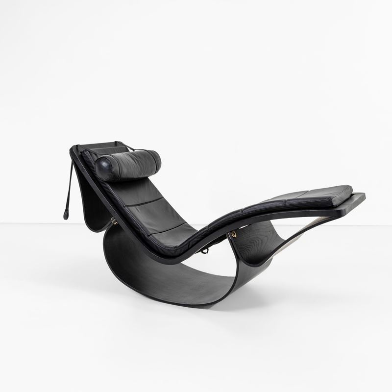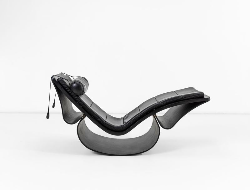 Struttura in legno verniciato, rivestimento in pelle.