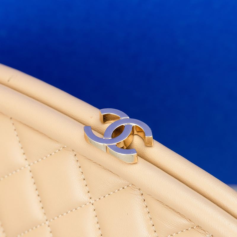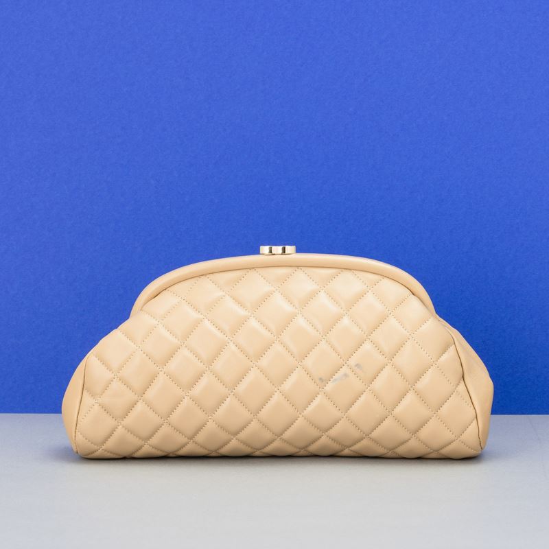 In pelle trapuntata, codice interno illeggibile, card di autenticità 20129579, macchie e difetti