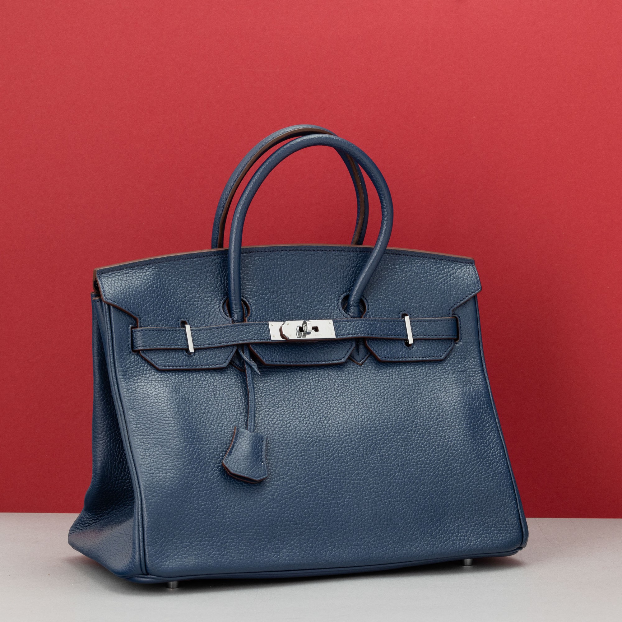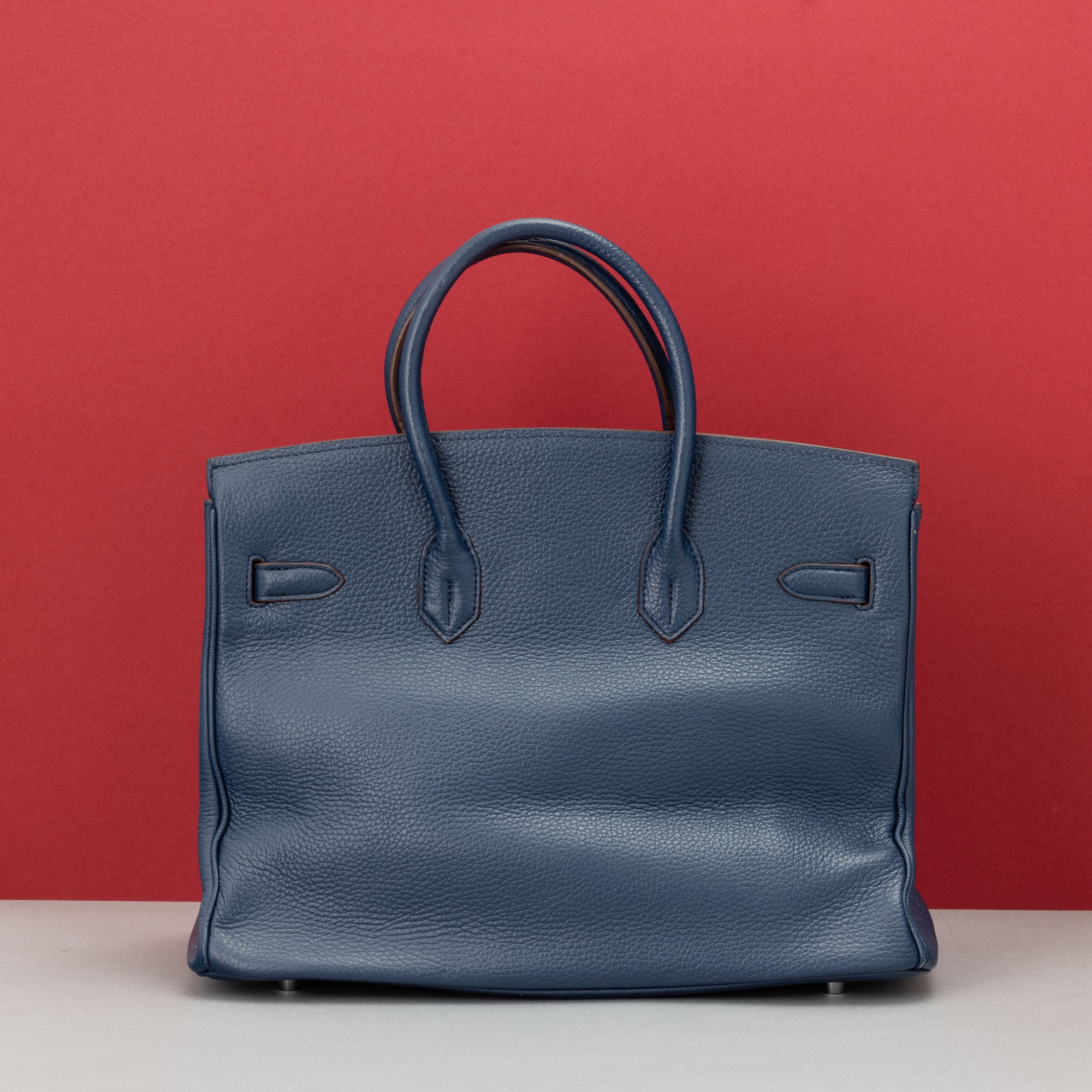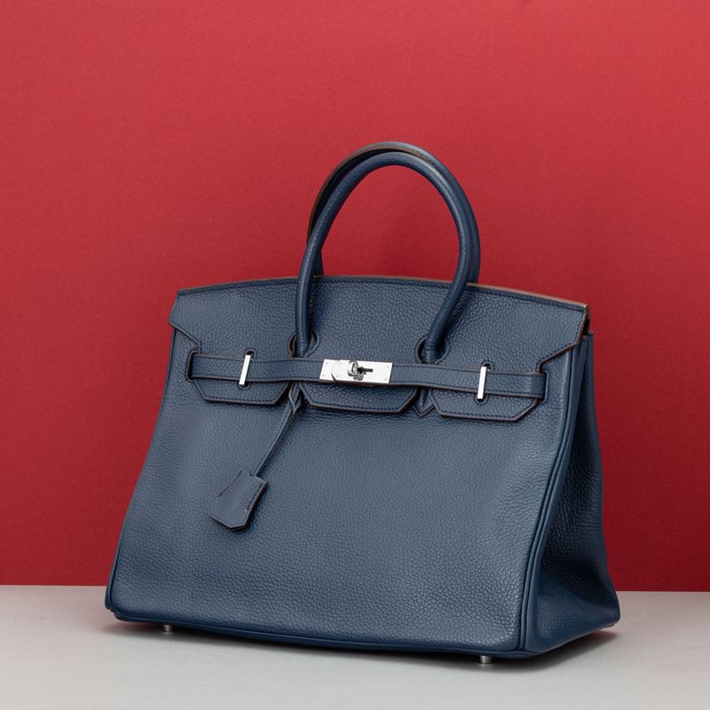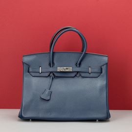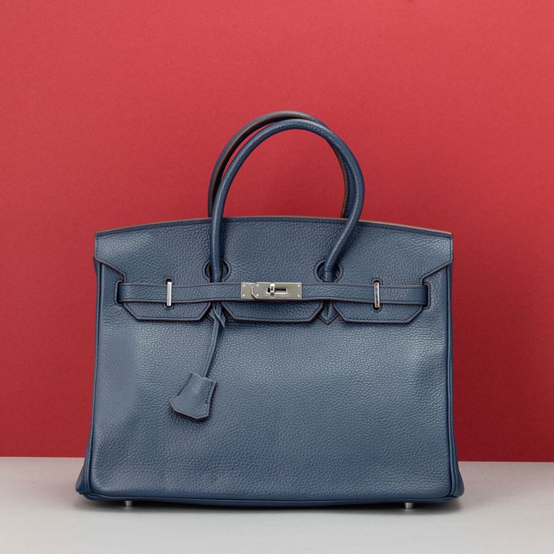 Borsa sofisticata, in pelle martellata blu, con chiave ma senza lucchetto, in ottime condizioni