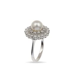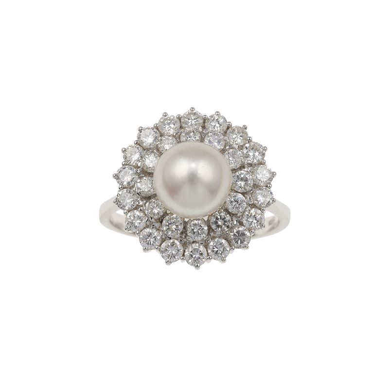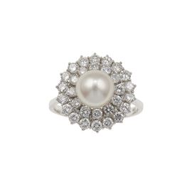 Anello con perla e diamanti a contorno