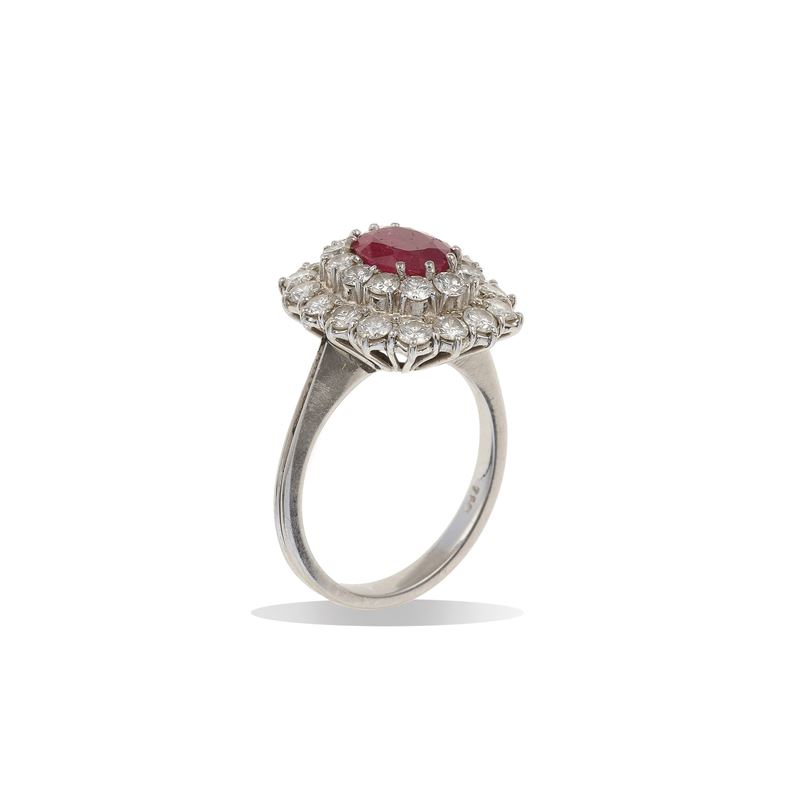 Anello con rubino centrale e diamanti a contorno