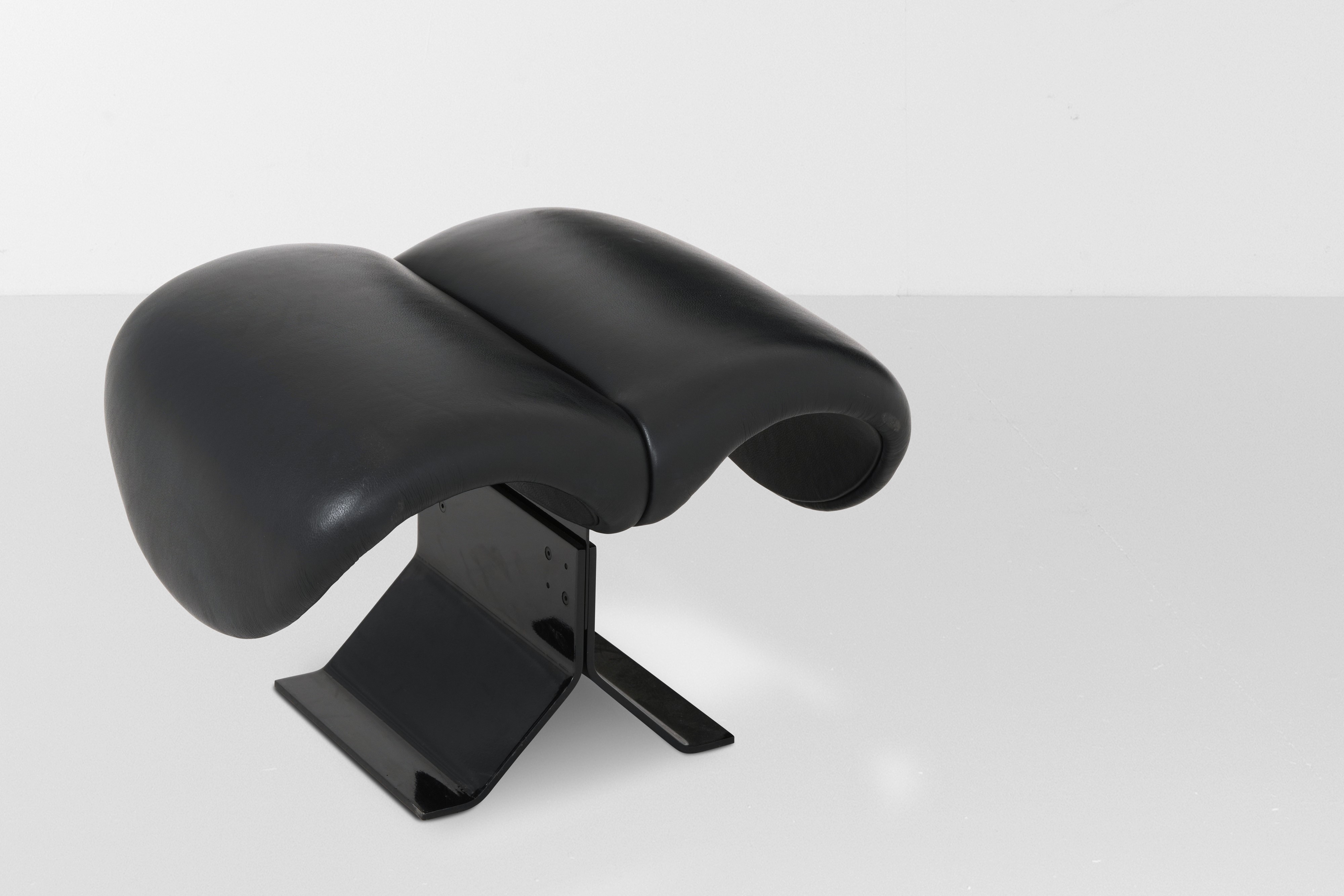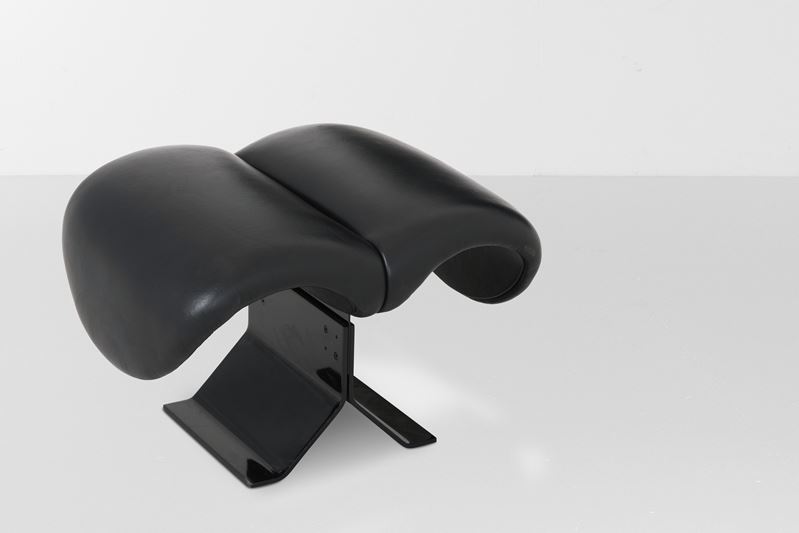 Struttura con rivestimento in pelle e sostegni in metallo laccato.